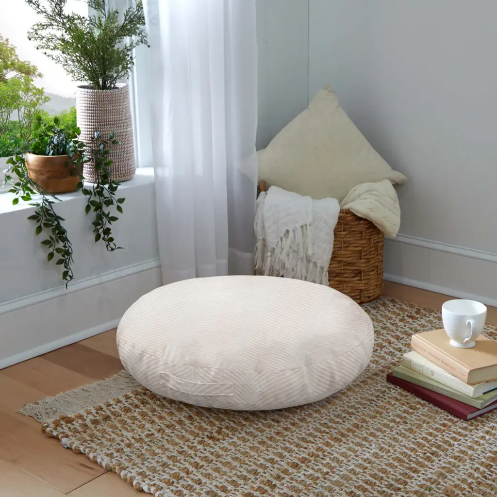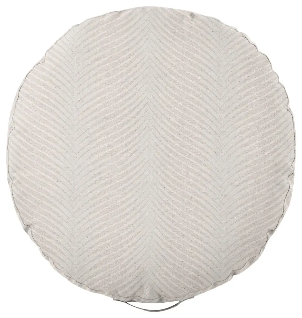Elevate your outdoor space with this versatile natural tufted floor pillow. Featuring a stunning leaf print fabric and billowy comfort, this circular floor cushion is sure to add that personal touch you''ve been hunting for. Move your floor pillow to any area thanks to a trendy and functional handle. From the front porch to the patio, each floor pillow is perfect for lounging, reading, or entertaining. Crafted in North America, this floor cushion is designed to withstand wear and tear so all you have to do is sit back and relax! Sunbrella is founded on the belief that fabrics should be both beautiful and functional. We began in the 1960s with the challenge of creating an awning canvas with a substantially longer lifespan than cotton. Sunbrella has become widely adopted for shade structures, marine canvas and upholstery fabric for both outdoor and indoor applications.Our textiles are made with close attention to design detail, and engineered with robust performance characteristics that provide resistance to fading and degradation from sunlight and chemical exposure. The fabric is tactile yet durable, has industry-leading environmental characteristics, is easy to care for and offers long life - wherever it''s used.No Sunbrella manufacturing facility in the world sends waste to landfills. A result of our focus on efficiency, this monumental achievement allows Sunbrella to lead by example, putting sustainability into practice every day across the globe. Our unique coloring process not only makes Sunbrella fabrics fade-resistant, it also conserves more water than conventional dyeing processes. At Sunbrella we believe it''s important to preserve the environment around our facilities. We work to conserve the plant and animal life that is native to the area and encourage our employees to plant gardens designed to provide fresh food and nourish local wildlife.We stand behind our fabrics with a guarantee that''s the best in the industry: a 5-year limited warranty for upholstery. This warranty protects the original purchaser of Sunbrella fabric. This warranty protects against Sunbrella fabric becoming unserviceable due to color or strength loss from normal usage and exposure conditions, including sunlight, mildew and atmospheric chemicals.• Ideal for casual indoor and outdoor use• Includes one (1) floor pillow• Floor pillow cover cannot be removed• • Floor pillow only. Furniture not included.• • Made in North America•