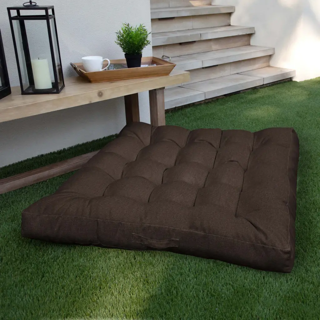 Elevate your outdoor space with this versatile brown tufted floor pillow. Featuring a stunning solid fabric and billowy comfort, this square floor cushion is sure to add that personal touch you''ve been hunting for. Move your floor pillow to any area thanks to a trendy and functional handle. From the front porch to the patio, each floor pillow is perfect for lounging, reading, or entertaining. Crafted in North America, this floor cushion is designed to withstand wear and tear so all you have to do is sit back and relax! Sunbrella is founded on the belief that fabrics should be both beautiful and functional. We began in the 1960s with the challenge of creating an awning canvas with a substantially longer lifespan than cotton. Sunbrella has become widely adopted for shade structures, marine canvas and upholstery fabric for both outdoor and indoor applications.Our textiles are made with close attention to design detail, and engineered with robust performance characteristics that provide resistance to fading and degradation from sunlight and chemical exposure. The fabric is tactile yet durable, has industry-leading environmental characteristics, is easy to care for and offers long life - wherever it''s used.No Sunbrella manufacturing facility in the world sends waste to landfills. A result of our focus on efficiency, this monumental achievement allows Sunbrella to lead by example, putting sustainability into practice every day across the globe. Our unique coloring process not only makes Sunbrella fabrics fade-resistant, it also conserves more water than conventional dyeing processes. At Sunbrella we believe it''s important to preserve the environment around our facilities. We work to conserve the plant and animal life that is native to the area and encourage our employees to plant gardens designed to provide fresh food and nourish local wildlife.We stand behind our fabrics with a guarantee that''s the best in the industry: a 5-year limited warranty for upholstery. This warranty protects the original purchaser of Sunbrella fabric. This warranty protects against Sunbrella fabric becoming unserviceable due to color or strength loss from normal usage and exposure conditions, including sunlight, mildew and atmospheric chemicals.• Ideal for casual indoor and outdoor use• Includes one (1) floor pillow• Floor pillow cover cannot be removed• • Floor pillow only. Furniture not included.• • Made in North America•