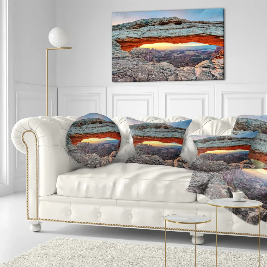 Sunrise At Mesa Arch In Canyon Lands Landscape Printed Throw Pillow, 12"x20"