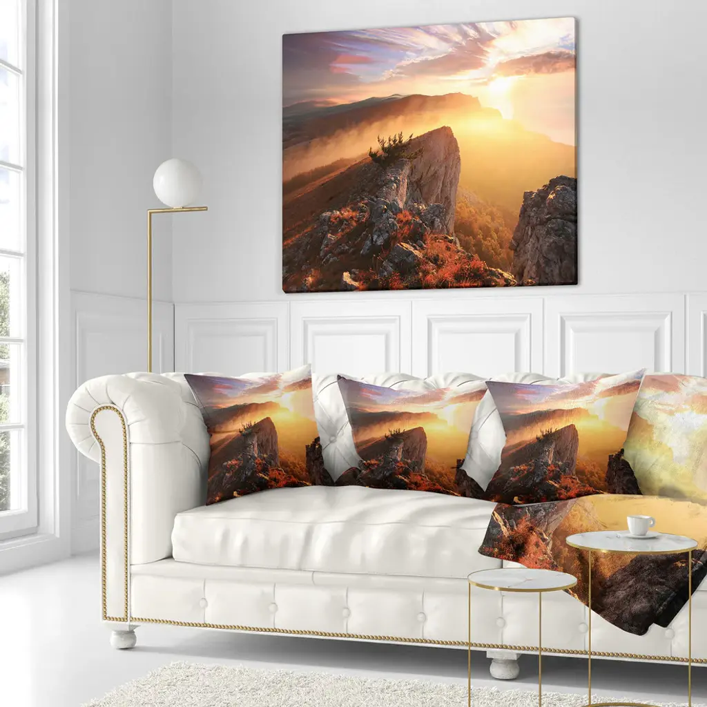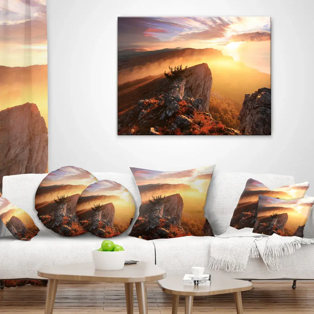 Sunrise In Ai Petri Mountains Landscape Photo Throw Pillow, 16"x16"