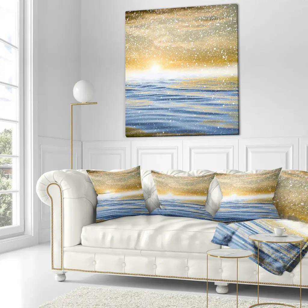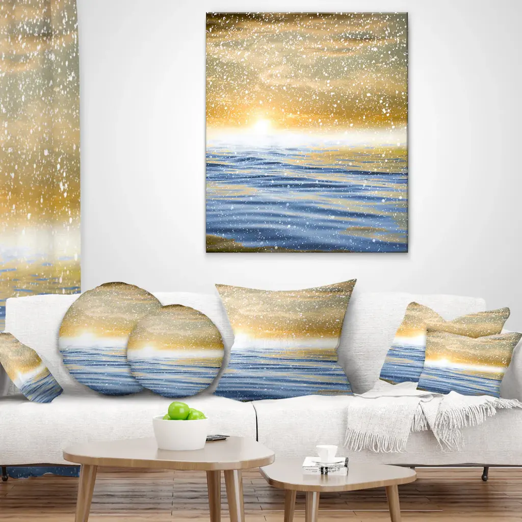 Sunset Over The Sea With Snow Skyline Photography Throw Pillow, 16"x16"