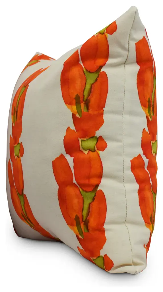 Your home will blossom in the light of E By Design''s accentual Market Flowers Sunset Tulip Stripe Orange Floral outdoor pillow. With an assortment of floral patterns and warm colors this collection will create an inviting environment on your porch, backyard patio, or any other outdoor space that needs a touch of fresh style!.