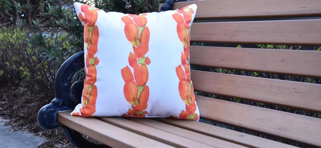 Your home will blossom in the light of E By Design''s accentual Market Flowers Sunset Tulip Stripe Orange Floral outdoor pillow. With an assortment of floral patterns and warm colors this collection will create an inviting environment on your porch, backyard patio, or any other outdoor space that needs a touch of fresh style!.