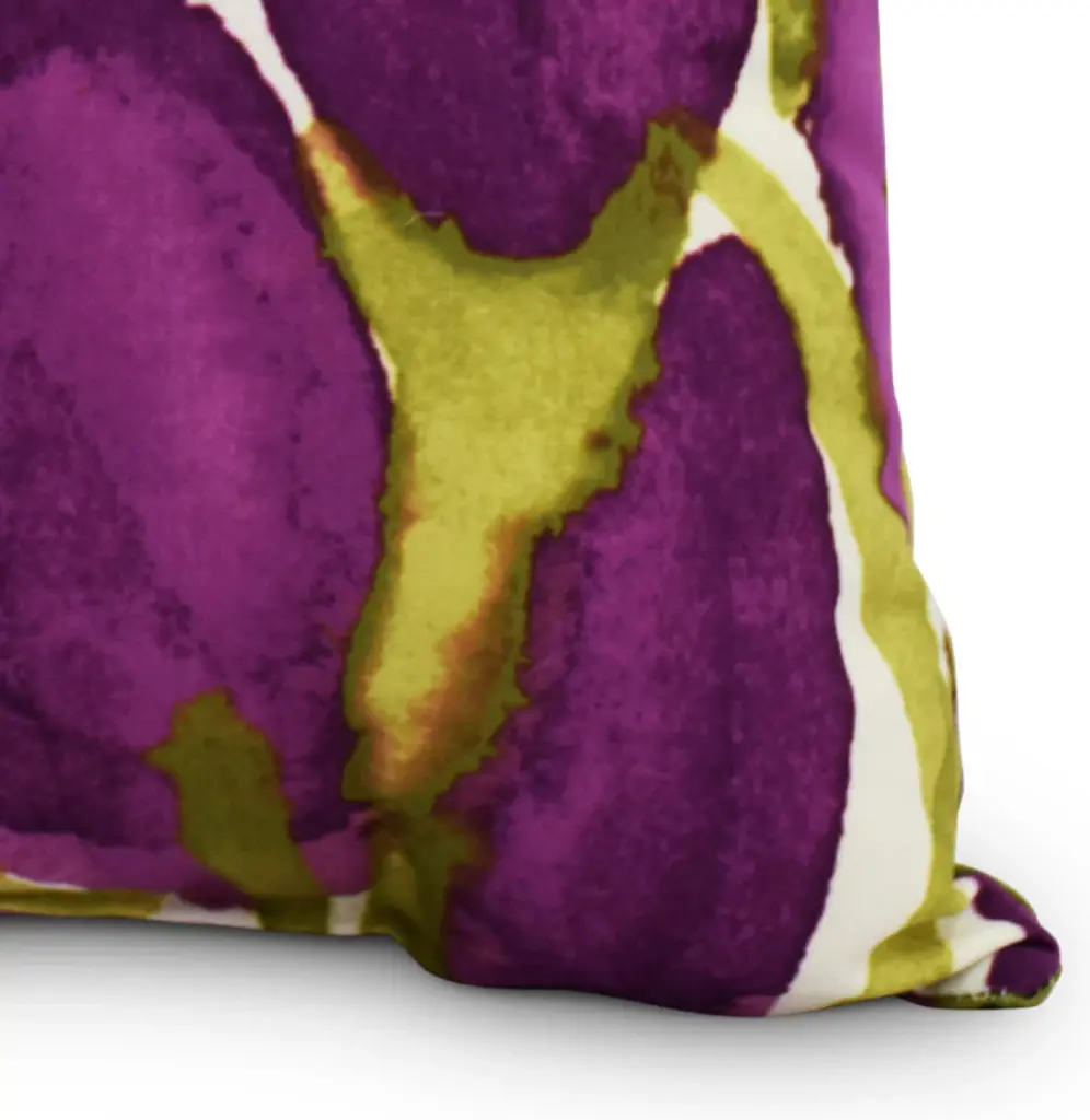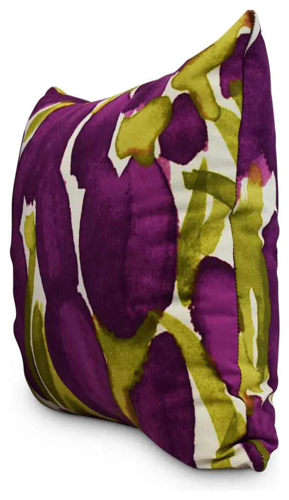 Your home will blossom in the light of E By Design''s accentual Market Flowers Sunset Tulip Purple Floral outdoor pillow. With an assortment of floral patterns and warm colors this collection will create an inviting environment on your porch, backyard patio, or any other outdoor space that needs a touch of fresh style!.