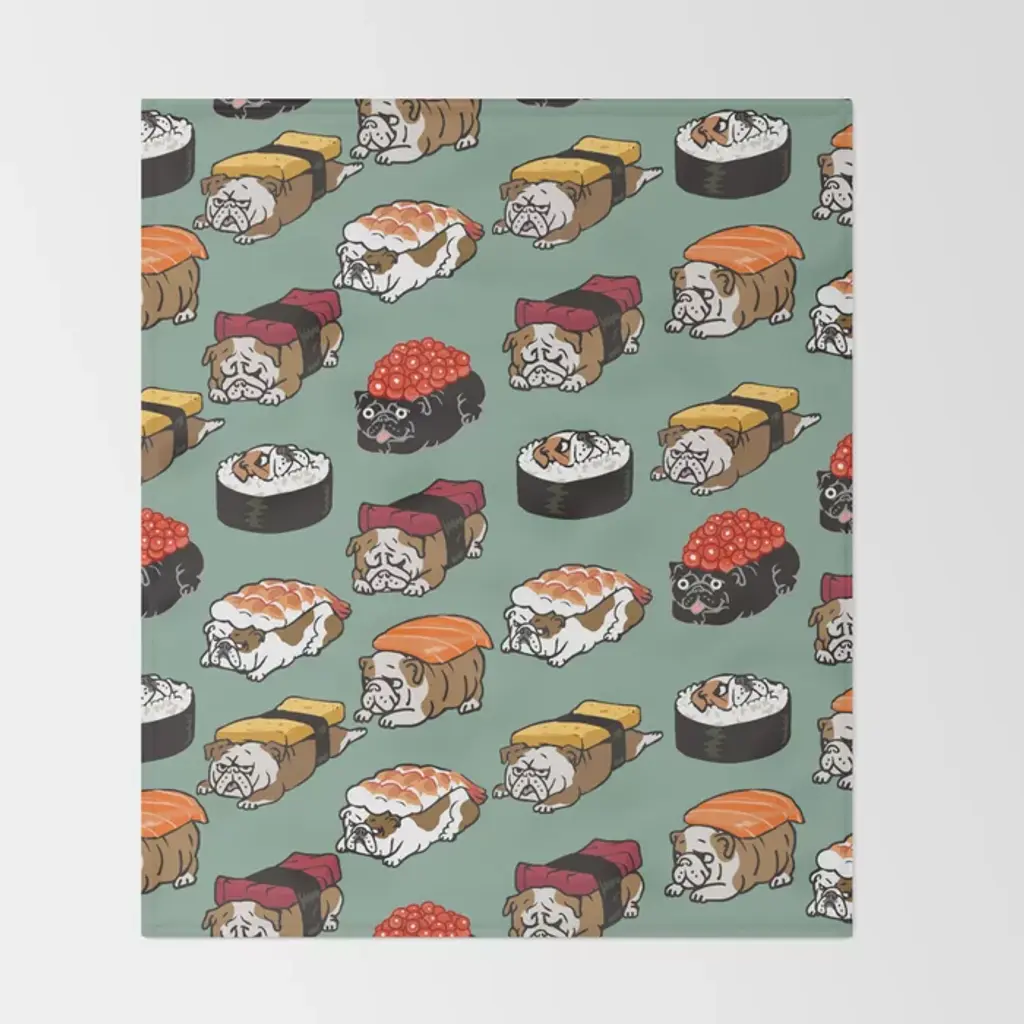 Sushi English Bulldog Throw Blanket