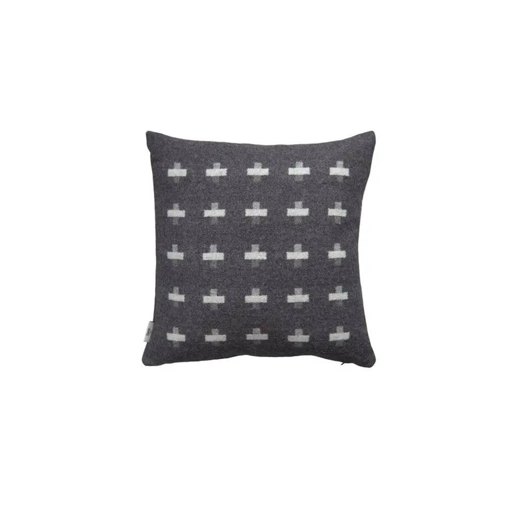 Røros Tweed's Syndin cushion charms with playful blocks of contrasting colors, which have been inspired by the mountainous landscapes of the Syndin region in Norway. Designed by Kristine Five Melvær, the Syndin collection offers visual delight with its geometric shapes as well as luxurious softness and comfort. You can make use of two beautiful patterns, as the design varies in the front and back of the Syndin cushion. High-quality home textiles by the Norwegian Røros Tweed are made from 100% Norwegian lambswool, shorn from sheep living free in the mountains. The manufacturing process is also kept fully in Norway to maintain high standards, which have been essential to the company's continued success since the 1940s.