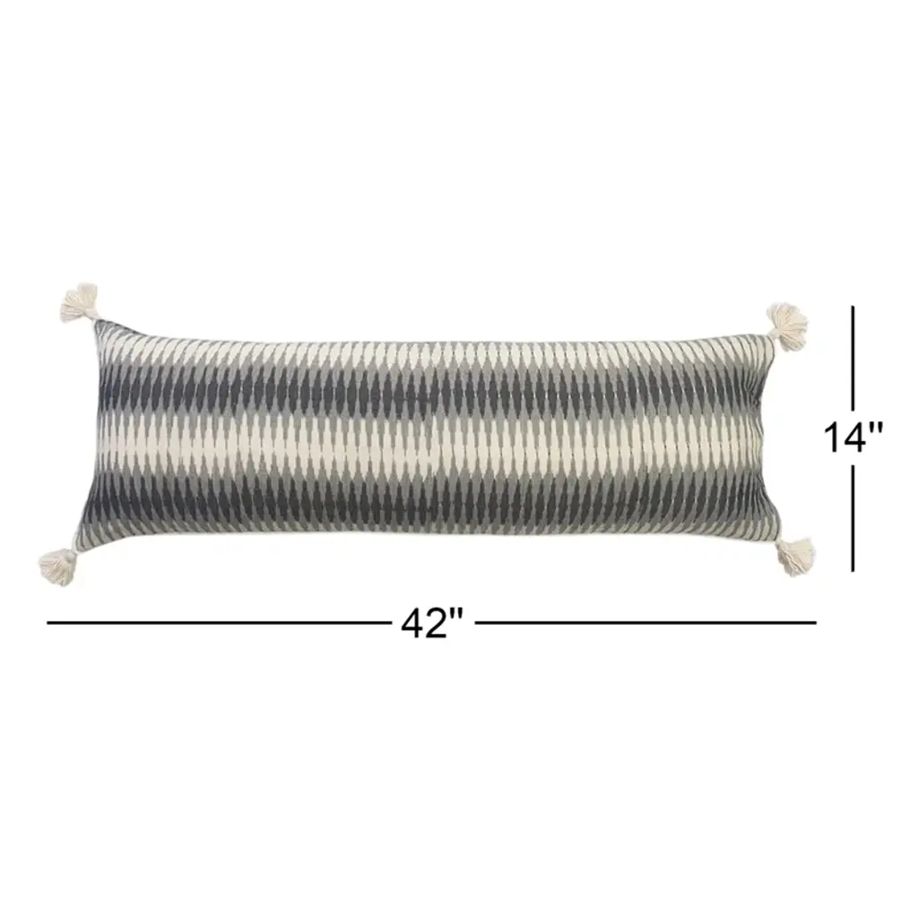 Add a touch of whimsy to your living space with this delightful bolster pillow. Featuring a cotton cover and a polyester-filled insert, it brings a cozy and inviting feel to your home. The reversible design allows you to switch up the look, while the playful tassels add a fun and fashionable touch. With a zipper closure, you can easily remove the cover for cleaning. This versatile accent pillow is a delightful addition to your sofa, bed, or favorite reading nook.