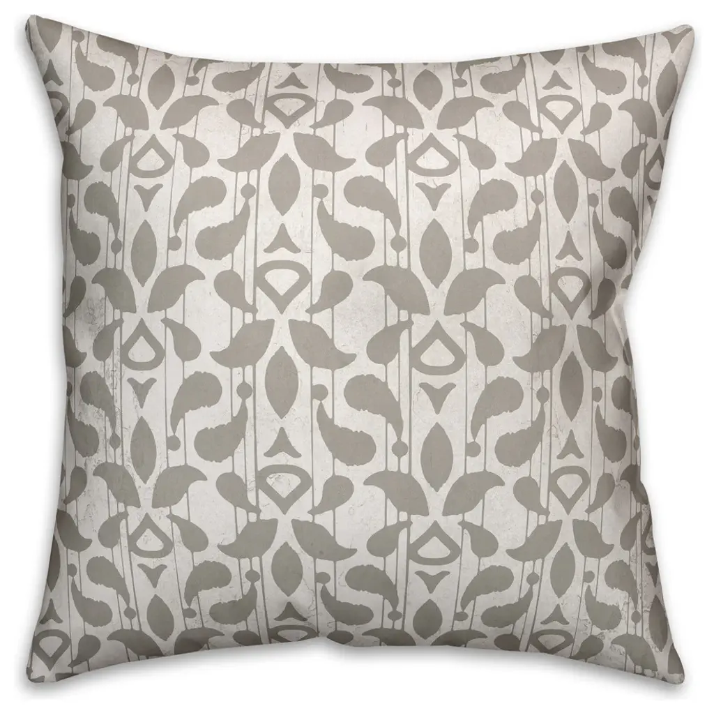 Taupe Floral Pattern Spun Poly Pillow, 18"x18"