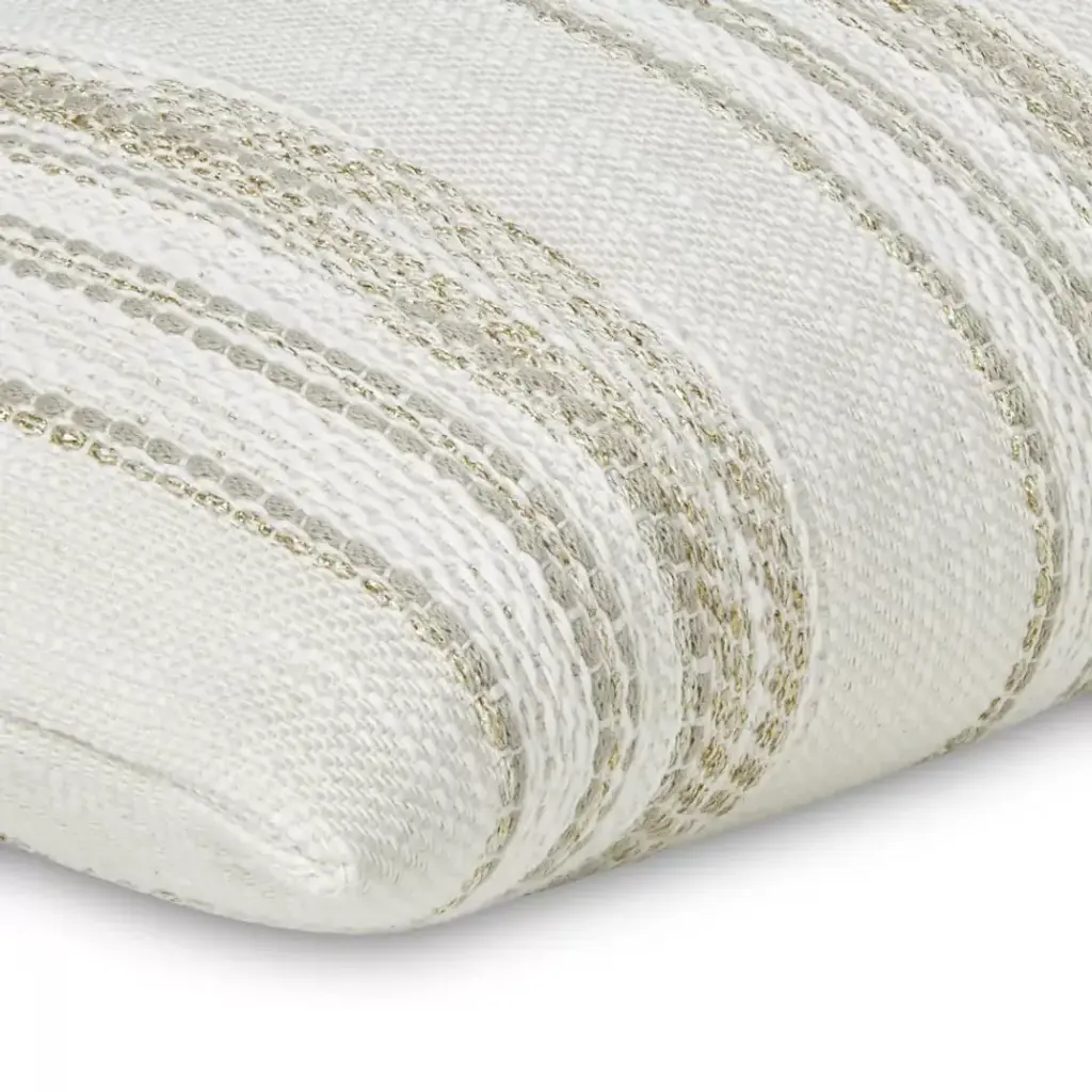 Gold and ivory striped pillow with a touch of woven metallic threads make this the ultimate style to showcase as a statement, or layer with the rest of our Terra collection.