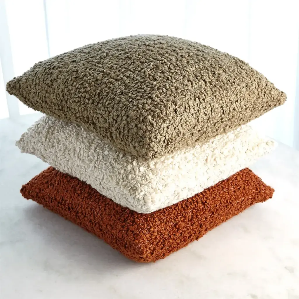 The Textured Boucle Pillow is as soft as it is cozy. This pillow is a loop yarn technique made out of polyester fabric. From a fashion forward perspective, Global Views offers accessories, furniture, statement lighting, and an assortment of rugs and mirrors to add beauty and joy to your home.