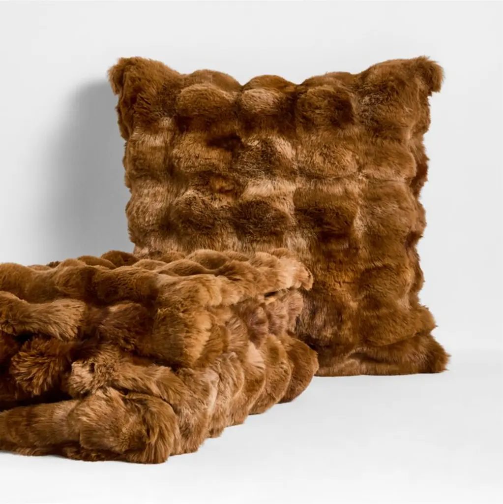 Textured Faux Fur 20"x20" Maple Brown Throw Pillow With Feather Insert