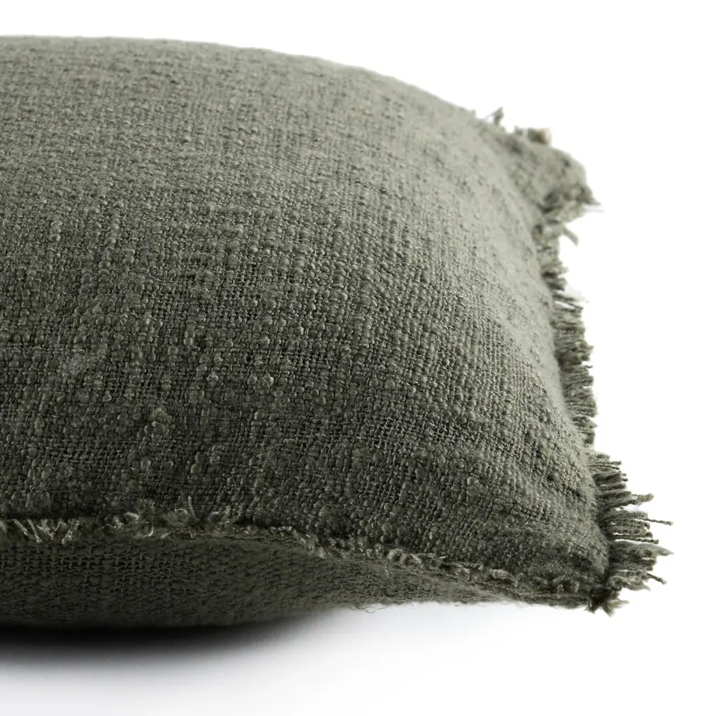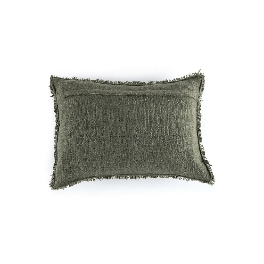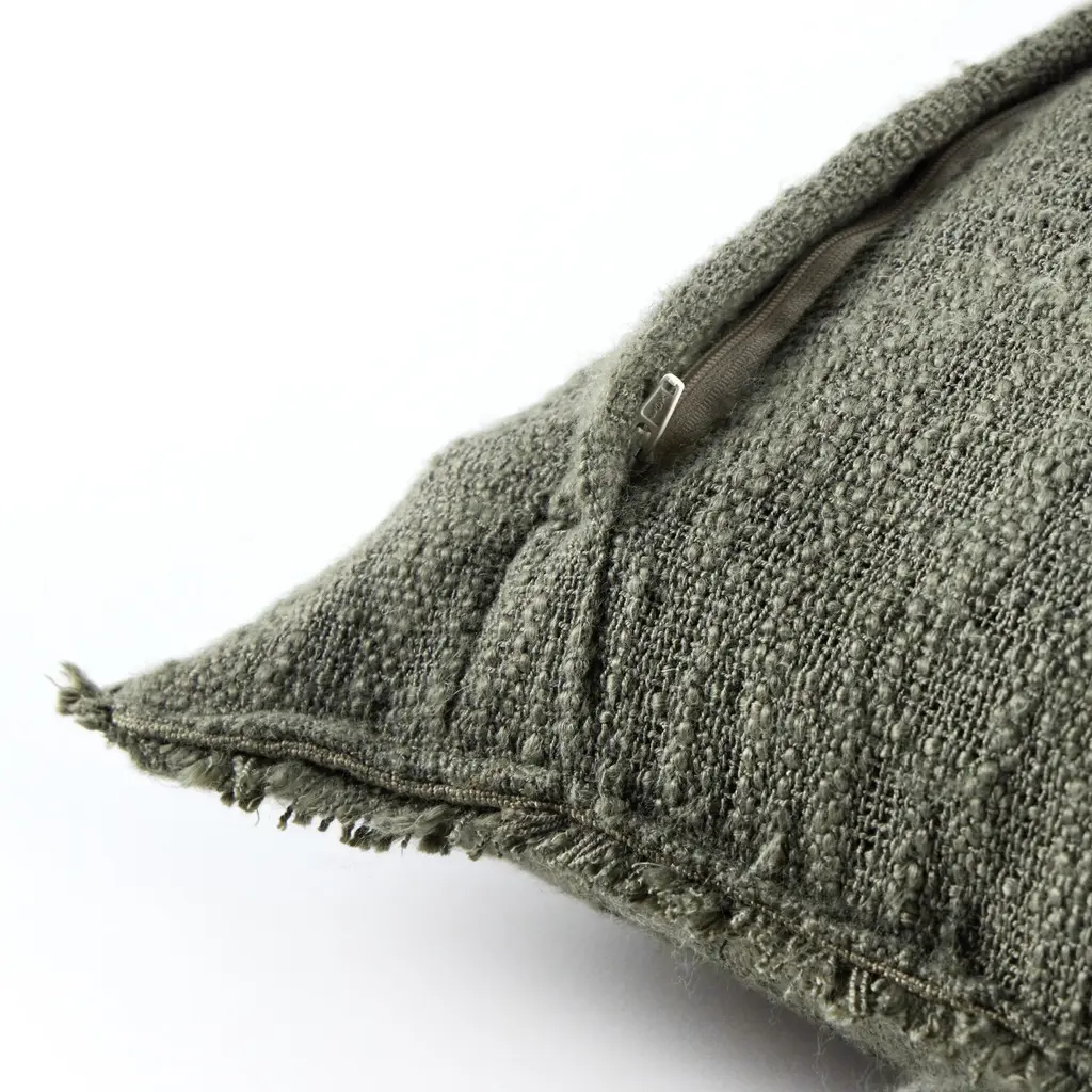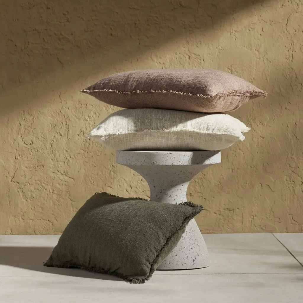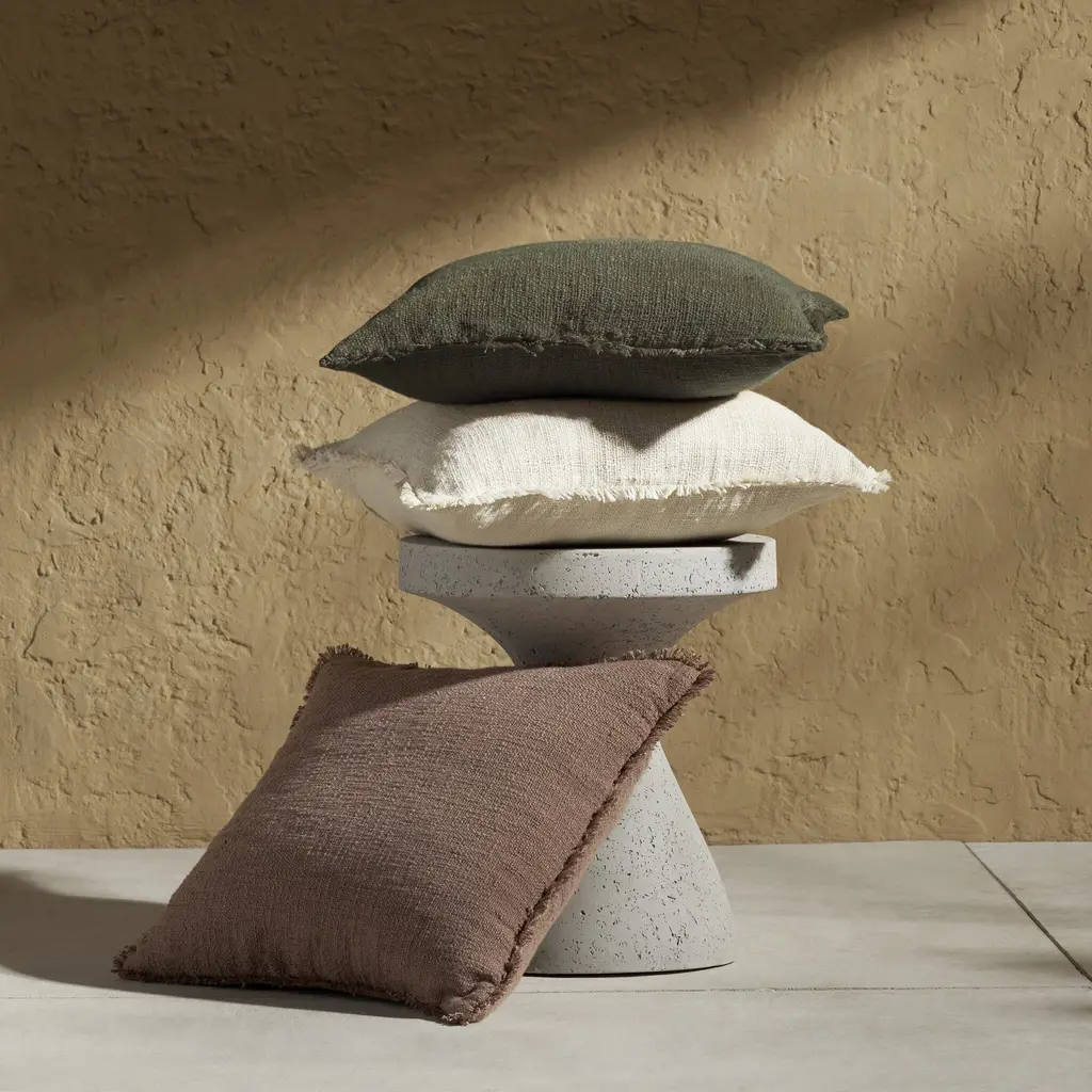The Tharp Outdoor Pillow from Four Hands displays refined textile sophistication through its considered material composition and tactile presence. Its distinguished high slub fabric creates dimensional interest through subtle irregularities—a testament to material authenticity that transcends conventional outdoor accessories. The meticulously executed eyelash fringe provides delicate articulation along the perimeter, enhancing the pillow's architectural presence with restrained elegance. Highlights