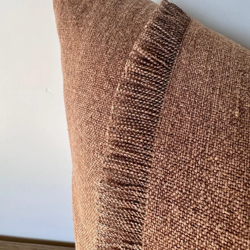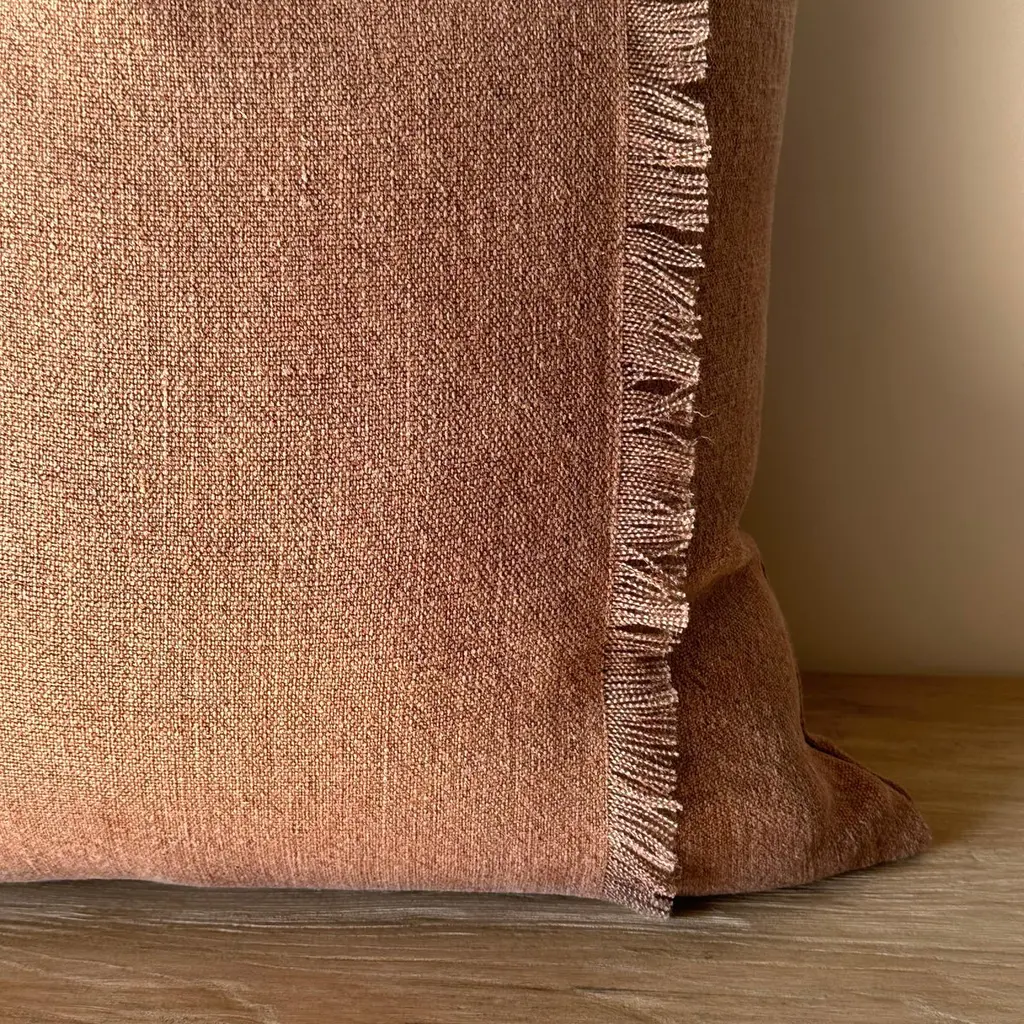 The Fringe Linen Accent Pillow In Rust Havane Color Includes Down Feather Insert