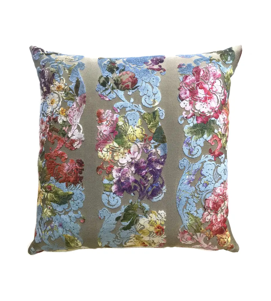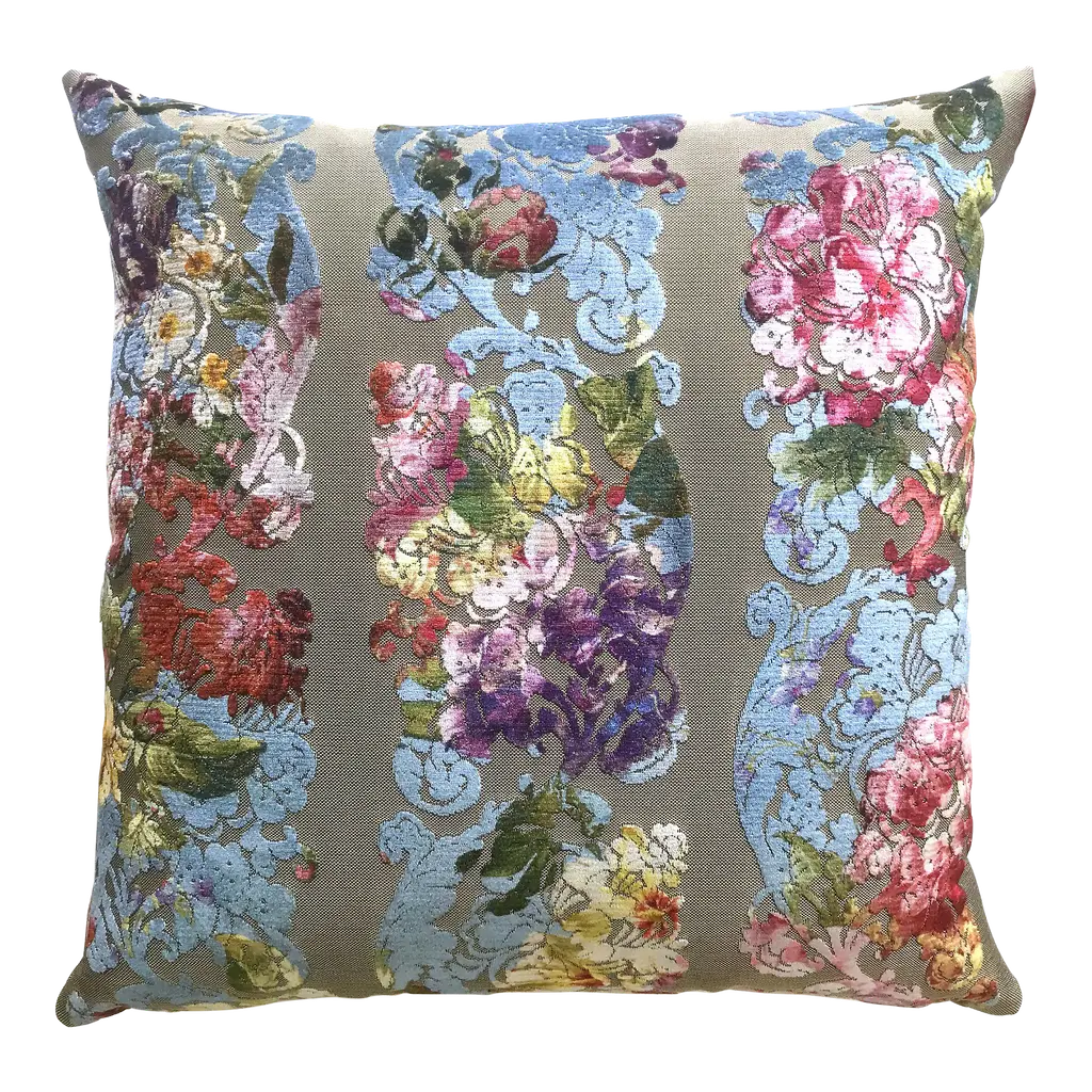 The House Of Scalamandré Jardin Colbert Pillow, Blue Satin