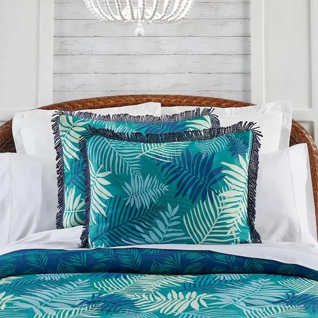 Transform your bedroom into a tropical oasis with the Summer Palm Comforter Set. This vibrant set features a beautiful pattern of palm fronds in soothing blues and greens, perfect for bringing a touch of paradise to your home. The comforter is reversible, offering versatility in styling, and is adorned with fringe for an added touch of elegance. The King Comforter Set includes king-size shams, completing the coordinated look. Whether you're dreaming of a beach getaway or simply want to refresh your decor, this comforter set is the perfect choice for creating a serene and stylish space.