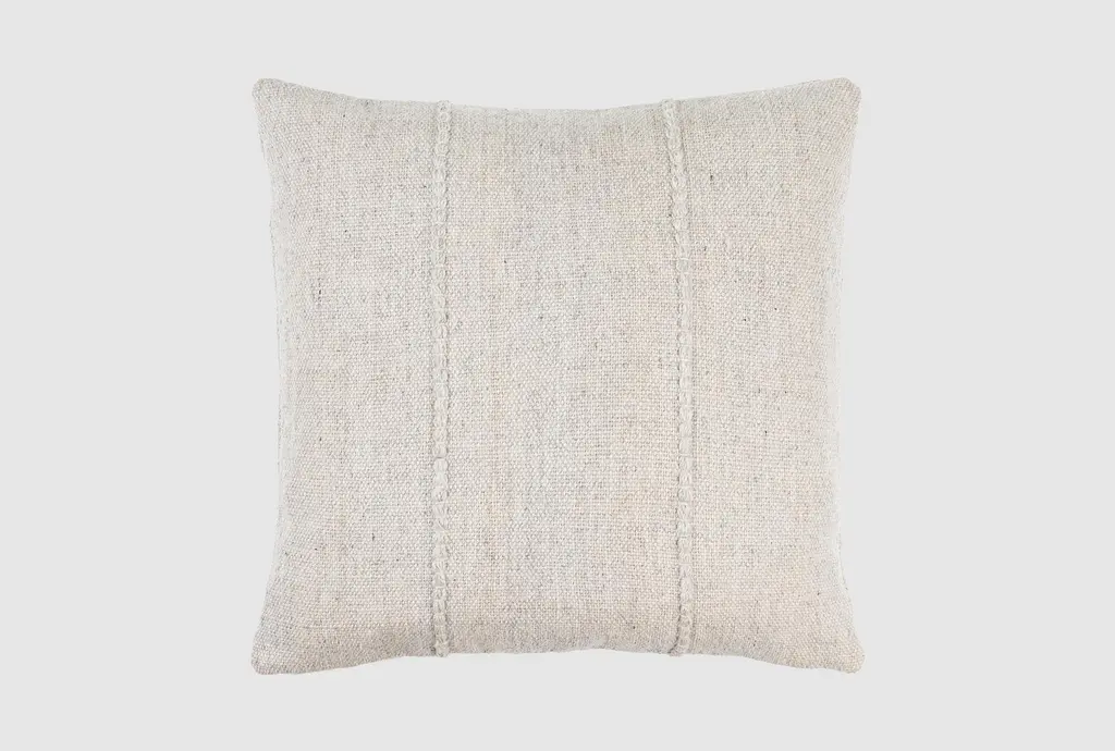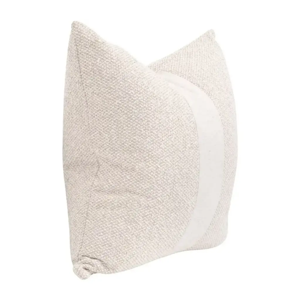 The Essentials For Living Split Decision 22" Essential Pillow will liven up any furnishings it is paired with. The pillow boasts a luxurious blend of LiveSmart Gellar-Linen with a performance textured cream linen stripe at the center. The cream linen stripe offers a subtle contrast to the soft and elegant LiveSmart fabric. The pillow is filled with 100% down that provides optimal comfort and support. With its high quality and performance fabric, the pillow is easy to clean and maintain a like-new appearance. It measures 22" wide, 5" deep, and 22" high, which is an ideal size to cozy up to. The knife-edge detail offers a unique and clean design, making it an ideal addition to any contemporary or modern decor.