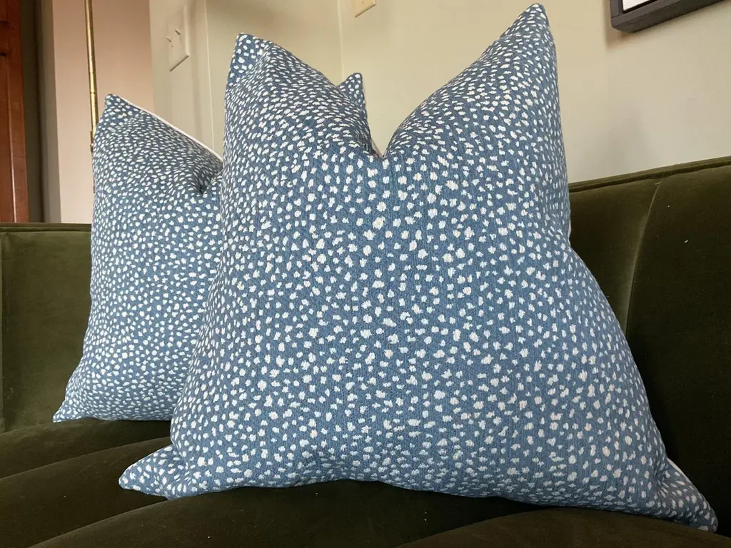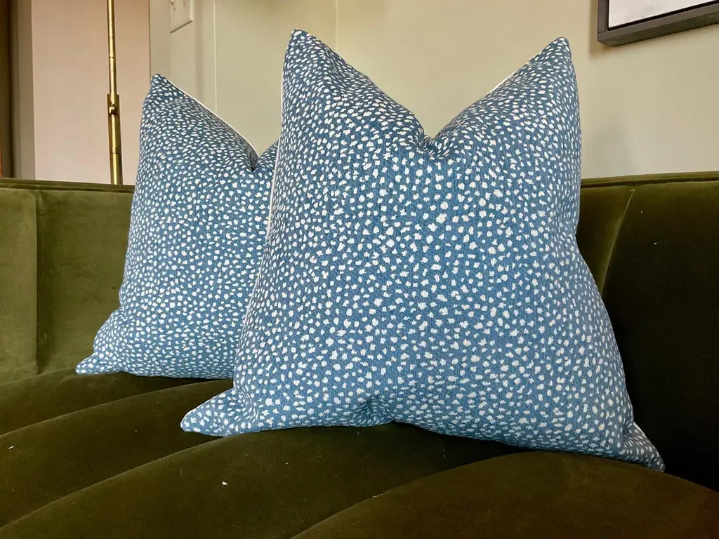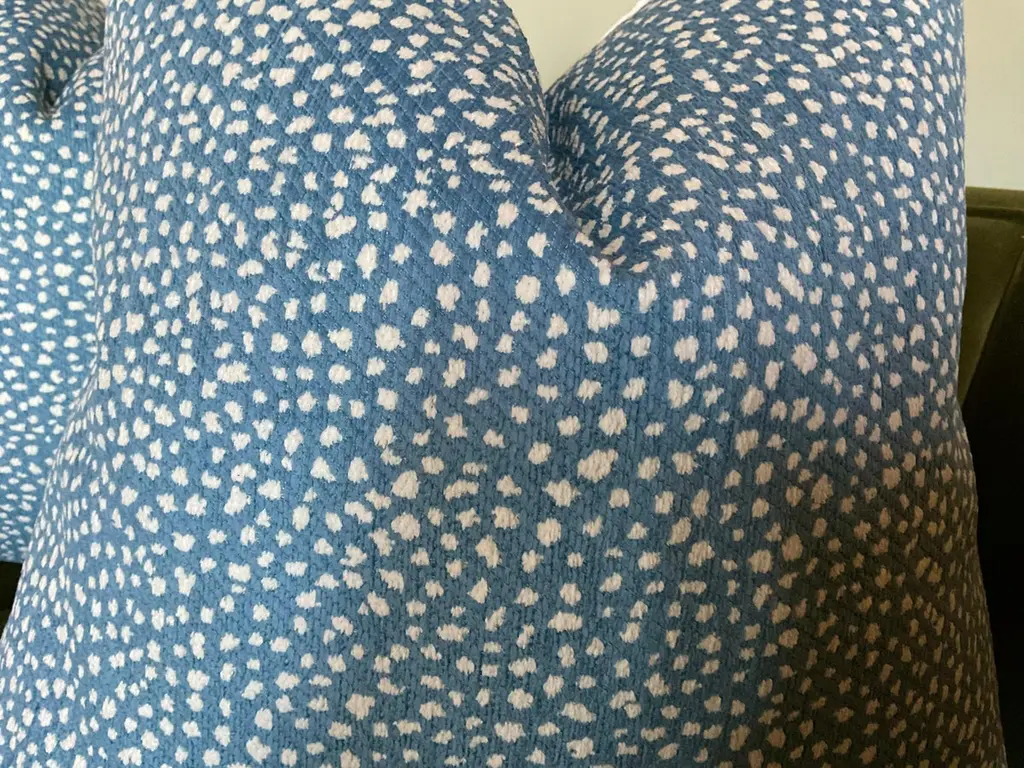 Love this fun pattern from Thibaut's Sierra Collection. "Fawn" in lake is a playful small scale spotted pattern. This versatile all-over dot design is soft and cozy and woven with fluffy chenille yarn.What a beautiful addition that's sure to brighten any room! Covers will come as a 22 inch pair with plush- down inserts.About UsAt AccentMarks, each designer pillow is crafted with care using the finest hand-selected fabrics and trims, paired with durable, discreet invisible zippers. We specialize in creating beautiful, high-quality pieces that elevate your home decor. While most of our listings feature 22" pillow pairs, we also offer a range of sizes and single pillow options to suit your needs. All of our pillows are proudly made in the United States.If you don't see the fabric you're searching for, please reach out via message as we have other fabrics available upon request and can create anything that you like. Thank you for visiting AccentMarks!