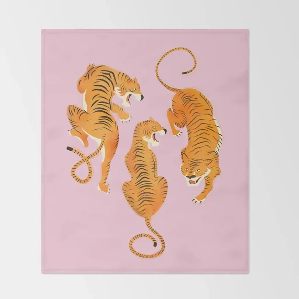 Three Fierce Tigers Throw Blanket