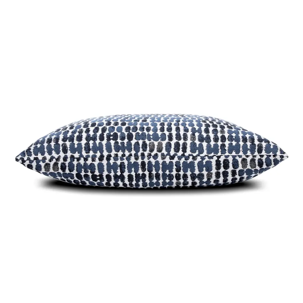This whimsical thumbprint pattern is woven from 100% Sunbrella yarns in shades of soft blue/gray and indigo. Features