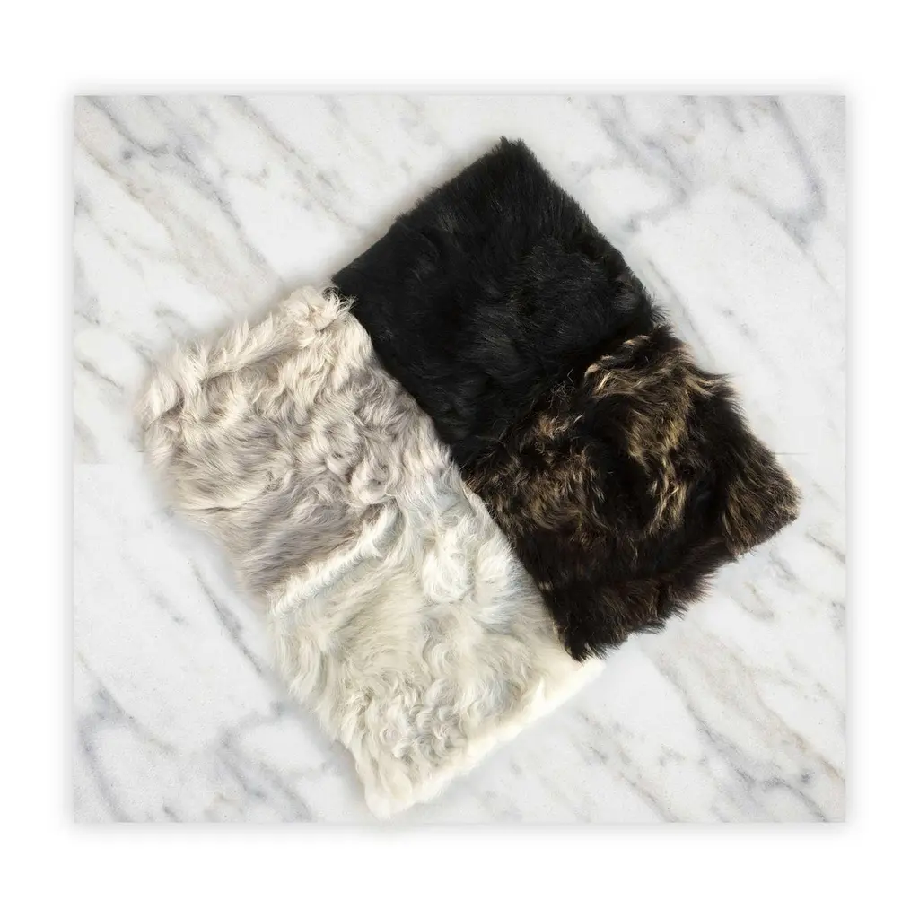 JG Switzer’s Unforbidden Fur collection is created from Spanish, Toscana sheepskin collected as remnant from an Italian glove factory. We take the pieces and have them upcycled into custom fabric to provide a sustainable, guilt free option to a timeless craft. Each piece is custom dyed to JG Switzer standards.The snowball fur pillow is into a 12-inch diameter snowball, designed to act as a statement piece on beds or furnishing and to complement the JG Switzer Heritage Sheep collection. This Toscana sheepskin piece is truly unique. Each creation is meticulously cut and sewn by JG Switzer’s in-house seamstress at the Sebastopol workshop. Each pillow is filled with upcycled wool from local sheep’s yearly, necessary sheering. Not all wool is created equal and JG Switzer strives to create a market for all sheep farmers. Once the snowball is sewn, clean wool is stuffed and sewn inside to create an all-natural object with a beautiful form. The 12-inch diameter fur snowball pillow is available in black, truffle, white and pearl gray.JG Switzer is an artisan textile and finished goods manufacturer devoted to the local workshop economy and all-natural fibers. We design, produce and market natural fiber, modern pieces and materials for the design and home goods industry. Much like wood or natural stone, each object is unique, in stock.