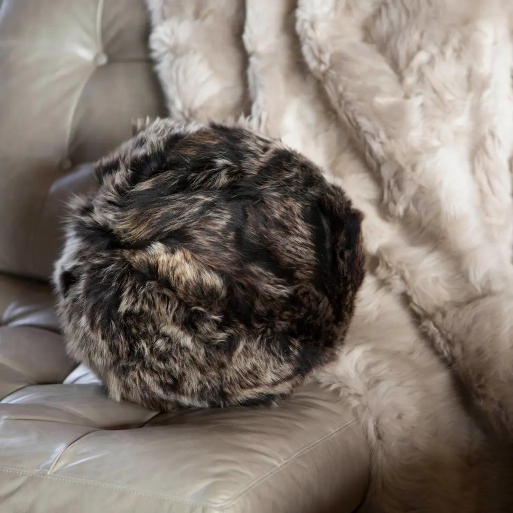 Toscana Sheepskin, Fur Snowball Pillow Black
