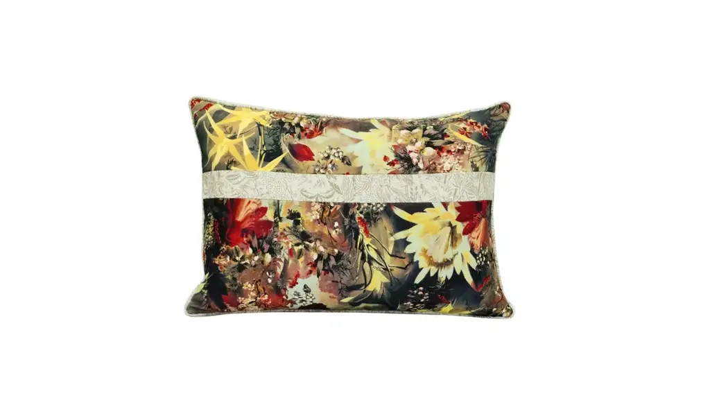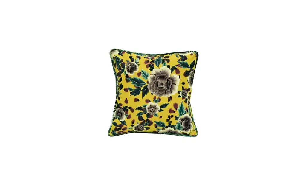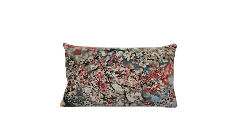 Cushion in SAKURA fabric with piping and back in plain velvet. Removable covers. More colours available. Manufactured in Europe