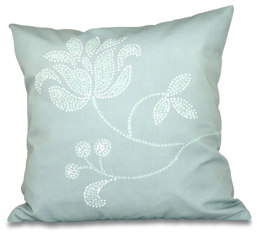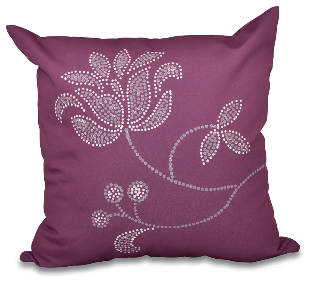 Traditional Flower-Single Bloom, Floral Outdoor Pillow, Gray, 18"x18"