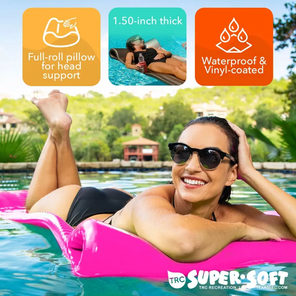 Trc Recreation Serenity 1.5” Thick Vinyl Coated Foam Swimming Pool Float Mat Adult Lounger With Built-in Roll Pillow, Flamingo Pink