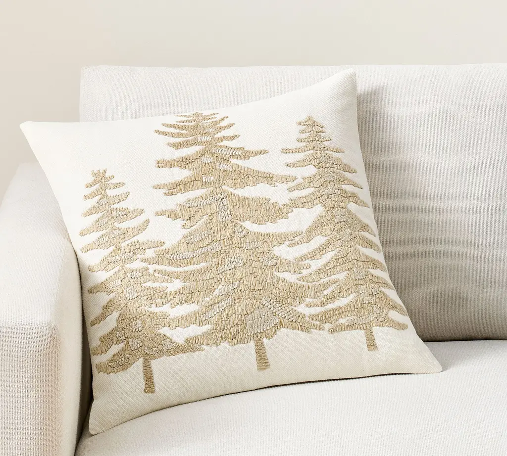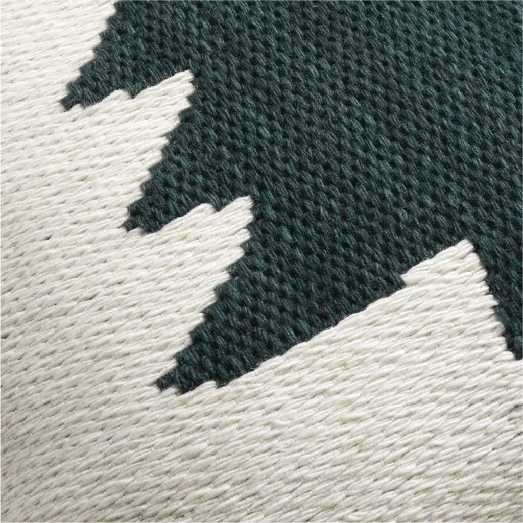 Cozy up your holiday decor with our ivory throw pillow focused on the stylized silhouette of a single spruce green pine tree. Featuring a kilim weavea tight interweaving of warp and weft strands often used to make carpetsthe square pillow highlights the angled shapes, heathered color and rustic texture characteristic of this celebrated weaving technique. Our exclusive pillows include your choice of a plush feather-down or lofty down-alternative insert.