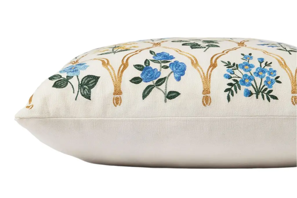 The Trellis Embroidered Pillow features a sophisticated trellis design beautifully embroidered on a soft fabric. Its elegant patterns and plush texture make it a stylish and versatile accent for any home decor.