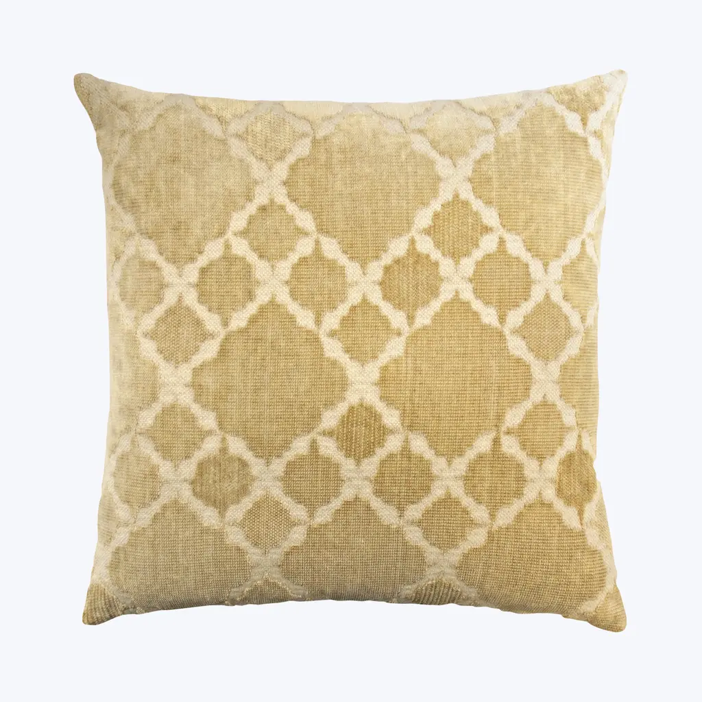 The eye-catching Trellis design features a dynamic visual interplay of shifting-scale medallion shapes. Each patterned Woven Jacquard pillow features an intricate weave structure made from a variety of different fibers. When these complex fabrics are painted with our proprietary dye technique, the results are museum-worthy, with intricate layers of color and texture that are unmatched.