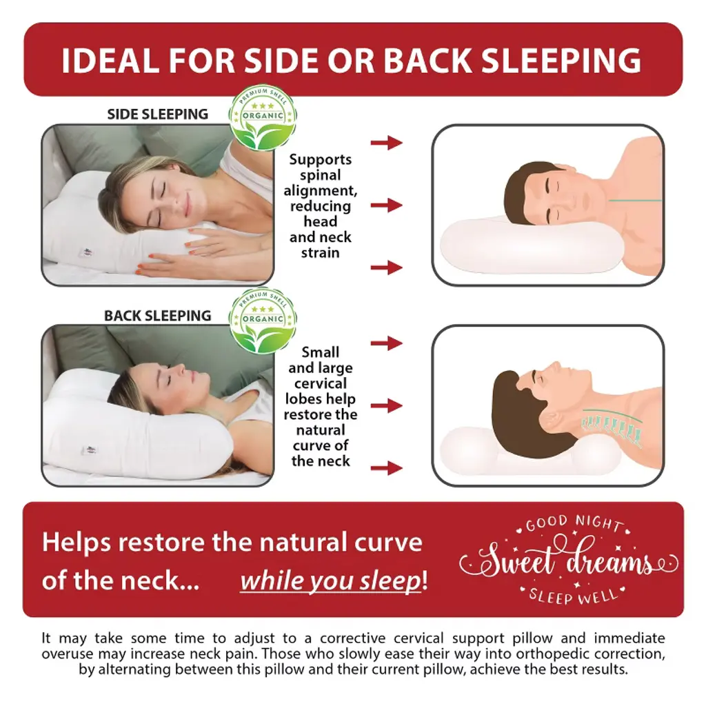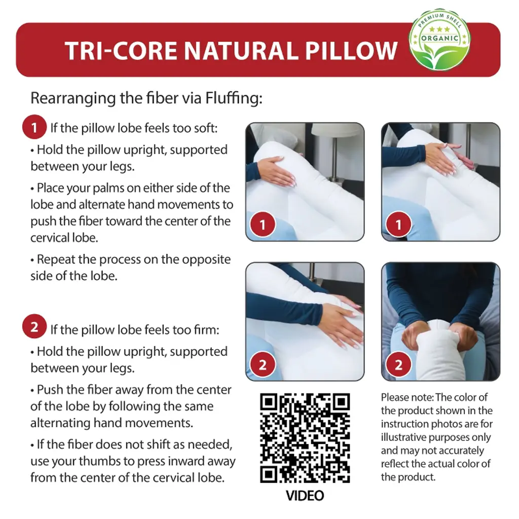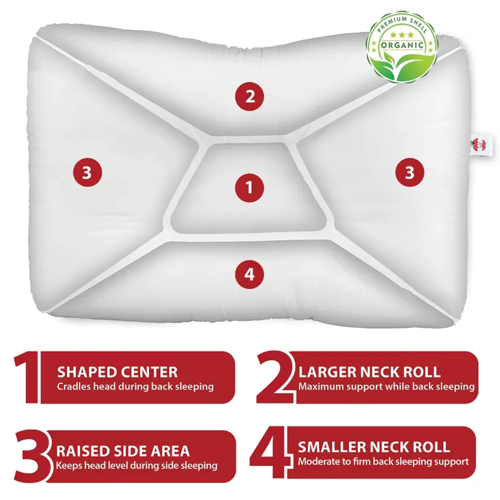 Tri-core Natural Cervical Support Pillow For Neck Pain, With Premium Organic Cotton Shell- Midsize, Firm