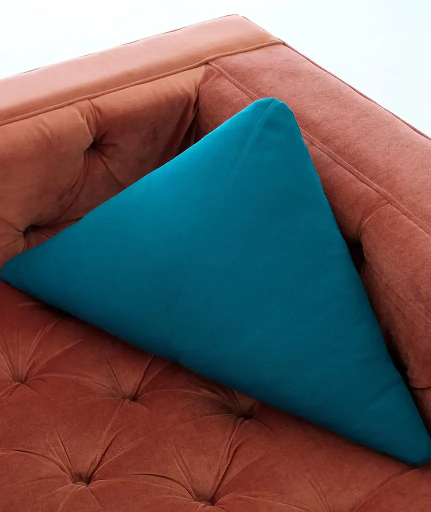 Triangle pillow filled with down and hand sewn in Los Angeles using all Sunbrella fabric color options. Suitable for both indoor and outdoor use.