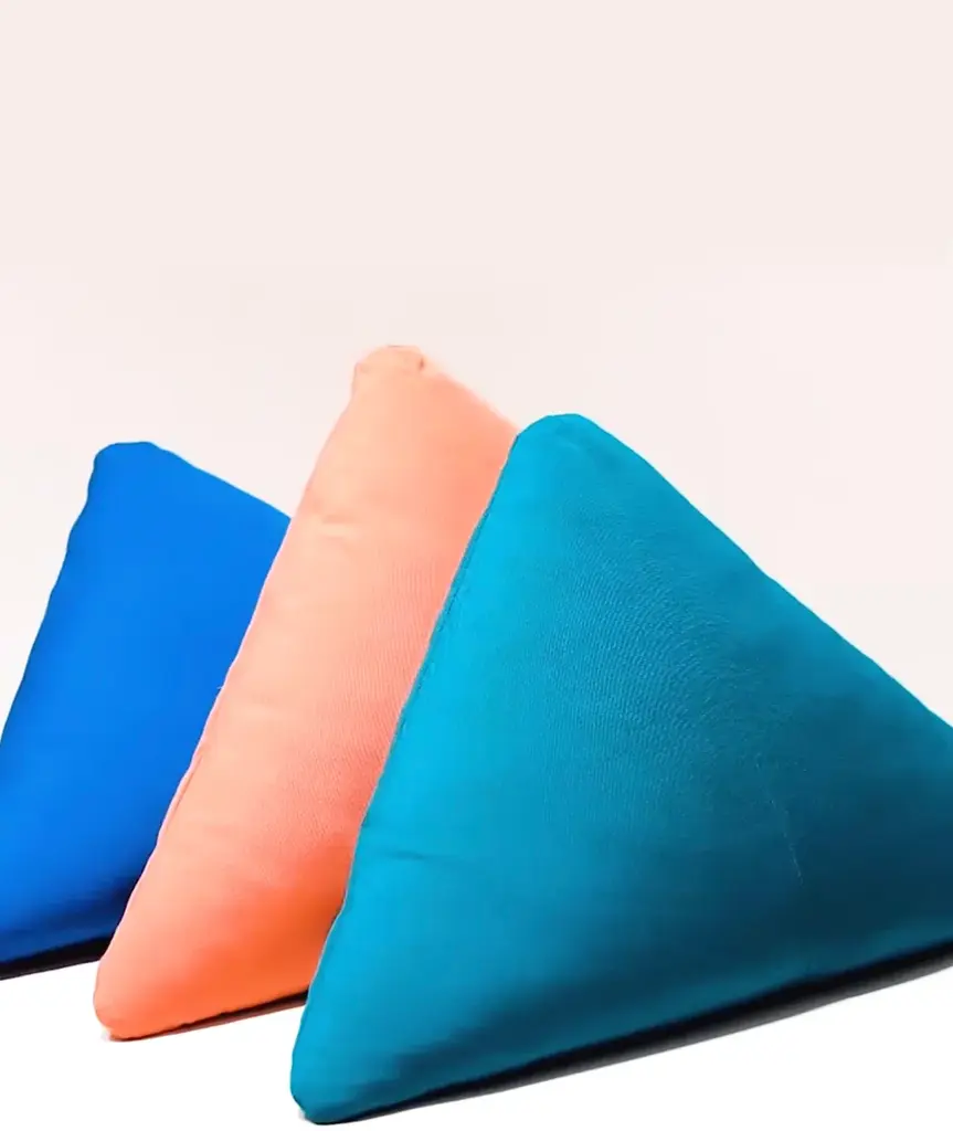 Triangle pillow filled with down and hand sewn in Los Angeles using all Sunbrella fabric color options. Suitable for both indoor and outdoor use.