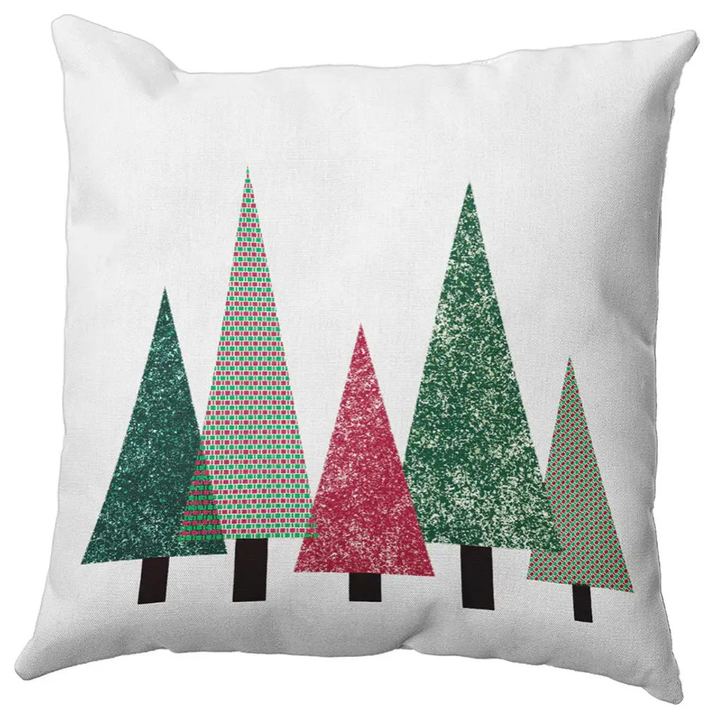 Styling your home for the holidays has never been so easy than with a Triangle Trees Pillow from our Holiday Cheer Collection. This indoor/outdoor pillow will add style to your porch, deck or patio! This decorative pillow is printed on both sides and crafted with a soft, durable polyester exterior, and filled with down alternative for a crisp look and a comfortable sitting experience. The fabric is resistant to weather, mold, and mildew so you can accentuate your indoor or outdoor decor. It is sewn closed with a knife edge and can be easily spot cleaned or dry cleaned. You''re bound to adore the holiday atmosphere brought to your home with these stunning designs to make your home merry and bright.