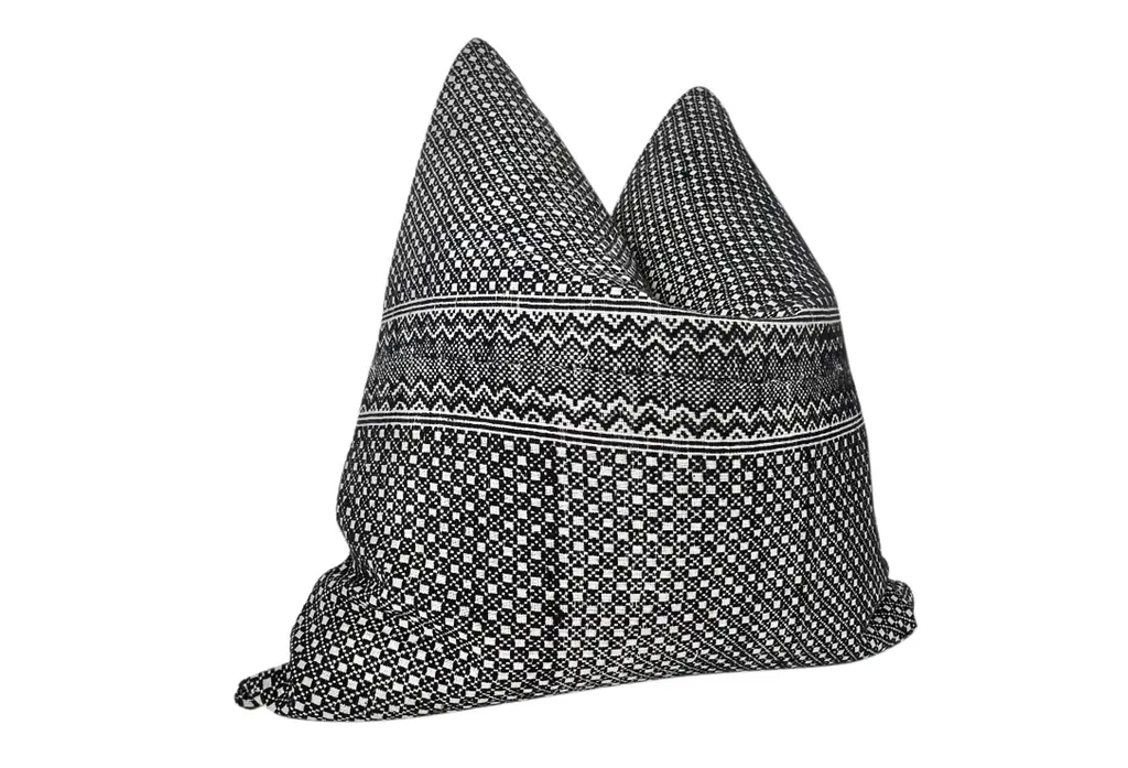 Custom hand cut-and-sewn large pillow made from authentic tribal hand-woven textural silk & cotton in dark indigo. Complemented with our premium white pure linen on reverse side. Ultra-Plump down-and-feather insert, invisible zipper closure. Impeccably created by Fragments Identity in sunny California!