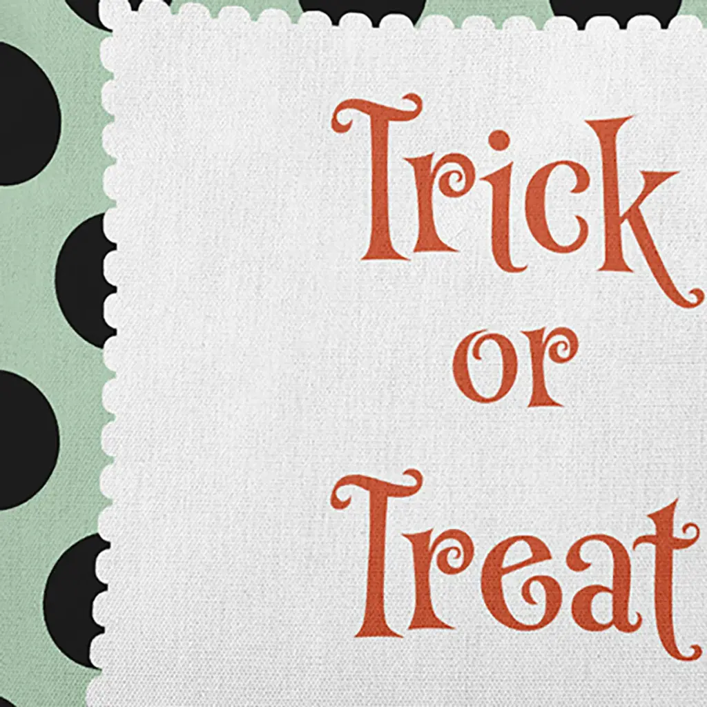 Create a festive and fun atmosphere in your home this Halloween season with our Halloween Trick or Treat Dots Pillow from the Witches Brew Collection. This indoor/outdoor pillow will add fun and style to your porch, deck or patio! This decorative pillow is printed on both sides and crafted with a soft, durable polyester exterior, and filled with down alternative for a crisp look and a comfortable sitting experience. The fabric is resistant to weather, mold, and mildew so you can accentuate your indoor or outdoor decor. It is sewn closed with a knife edge and can be easily spot cleaned or dry cleaned. The quirky designs in this collection are the perfect way to enhance your fall decor and to bring a smile to all who encounter them.