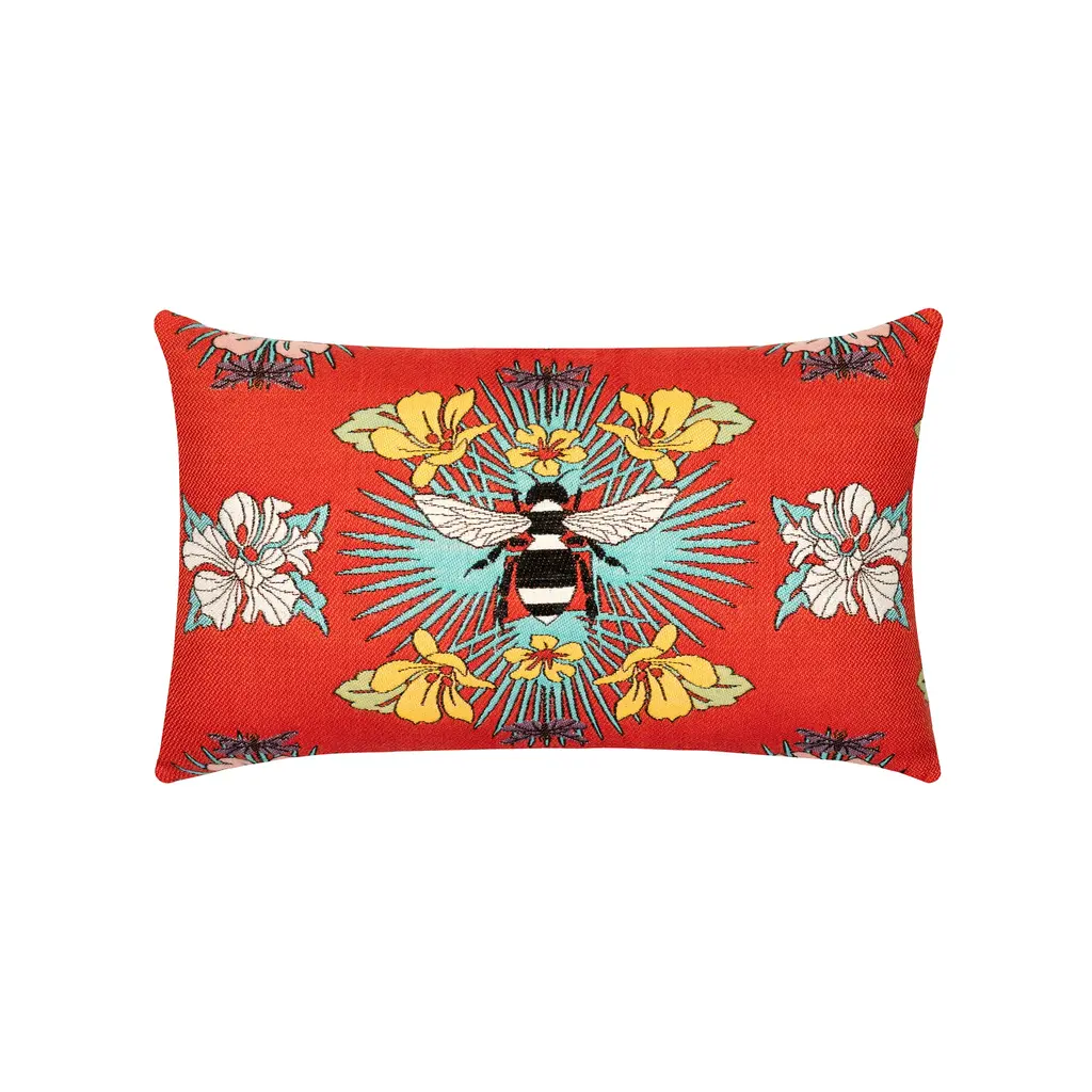 The Tropical Bee pillow is an exquisite jacquard fabric woven with multi colors and chenille. Made from entirely outdoor-safe Sunbrella yarns, this pillow will resist fading, weather and mildew. Features