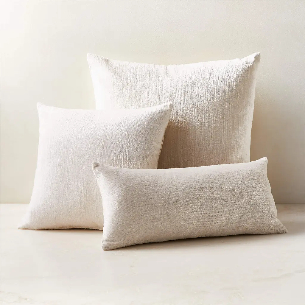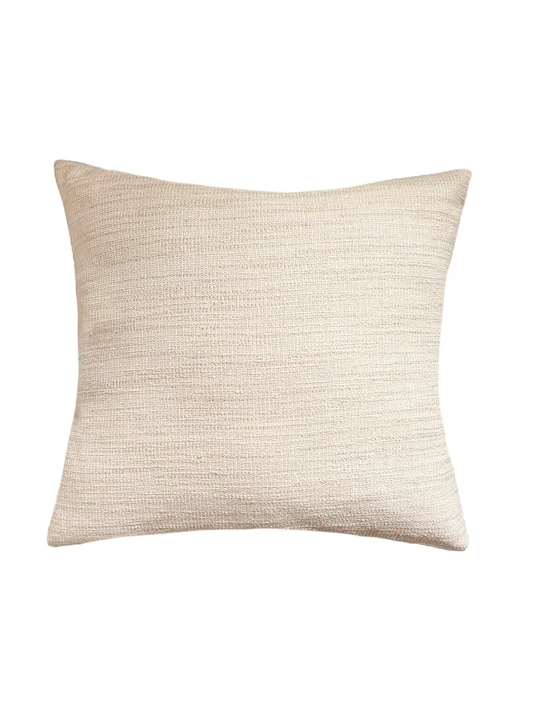 Authentic Turkish silk gives this white throw pillow a sublime aesthetic and superior feel. Turkish silk threads are handloomed into an exceptionally rich, velvet-like texture to create a luxurious, plush pillow. Because the silk is collected from different areas, there will be slight differences in color, as well as variations in the weave due to the handcrafted nature of the process. Natural variations in the nubs and slubs of the silk fiber draw attention to the fabric's beauty, highlighting its understated sheen. Knife edge with a hidden zipper closure, pillow flips to a solid neutral fine linen back.