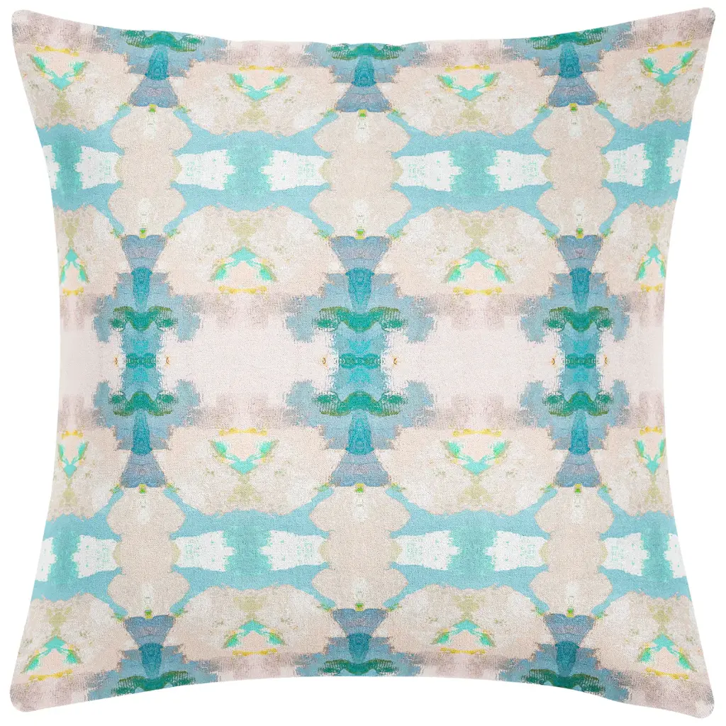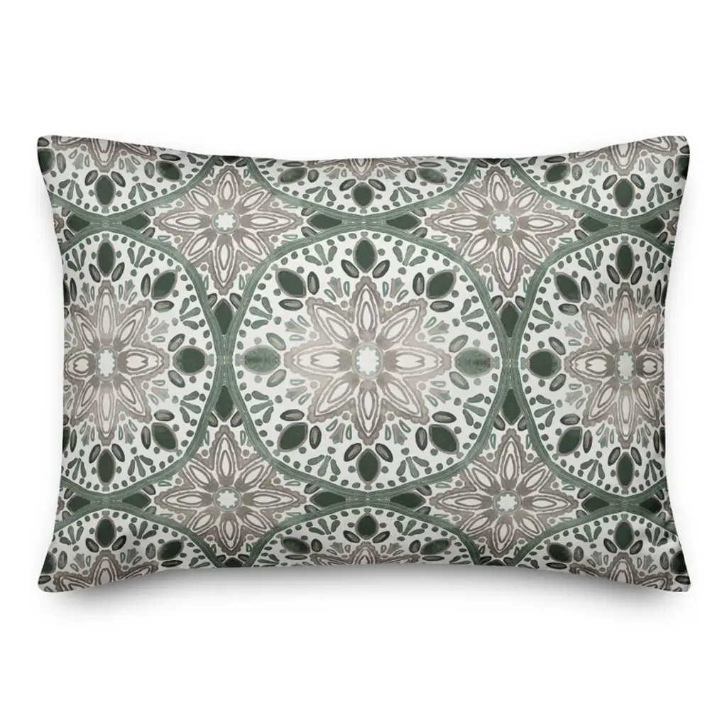 Trumpet Flower Geometric Print Outdoor Pillow, Olive, 18"x18"