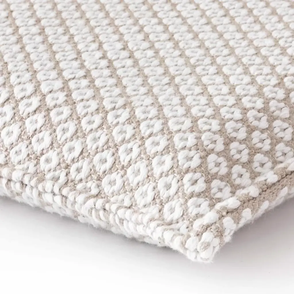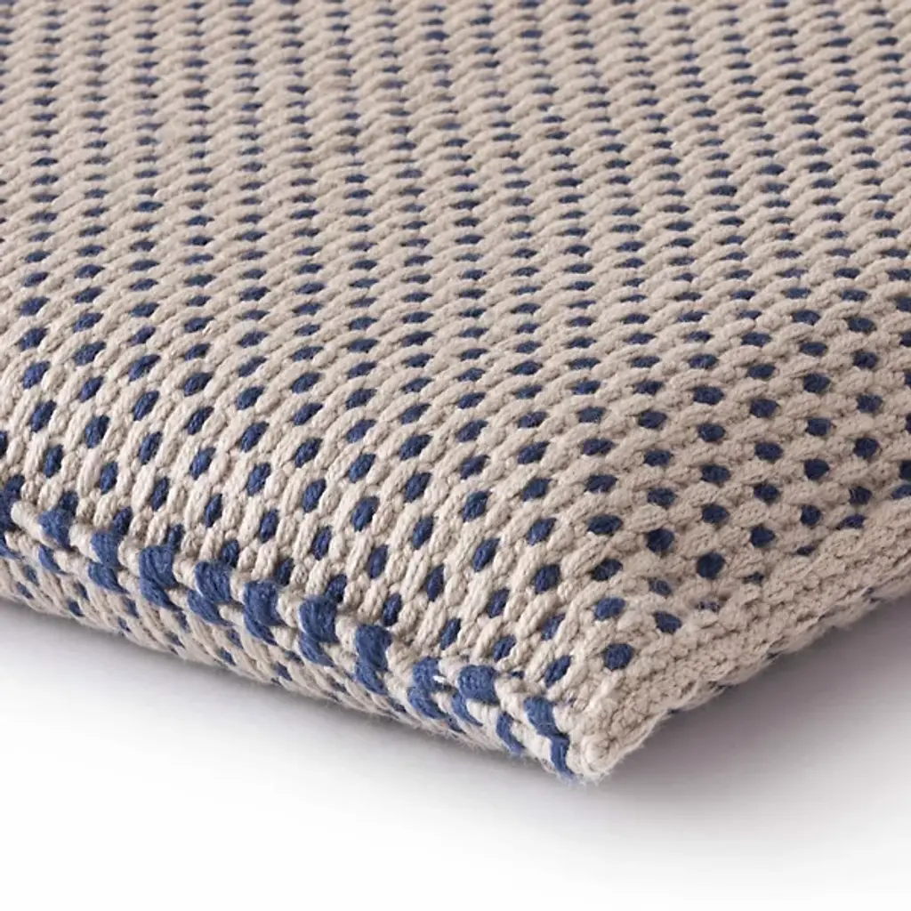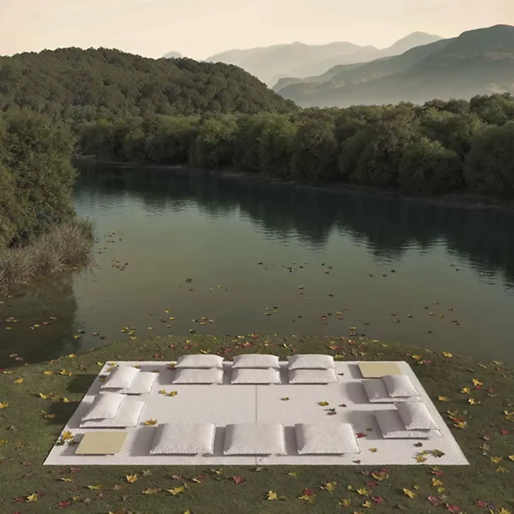 The Tuared Outdoor Pillow from Gan Rugs uses a hand-loom technique with recycled PET to create firm support for floor-based seating. Multiple pillows stack to form different heights for sitting, lounging, or back support. The construction method mirrors traditional textile approaches while incorporating sustainable fiber sources. Square dimensions work within the modular system of the Nomad collection, where individual pieces rearrange according to user requirements.