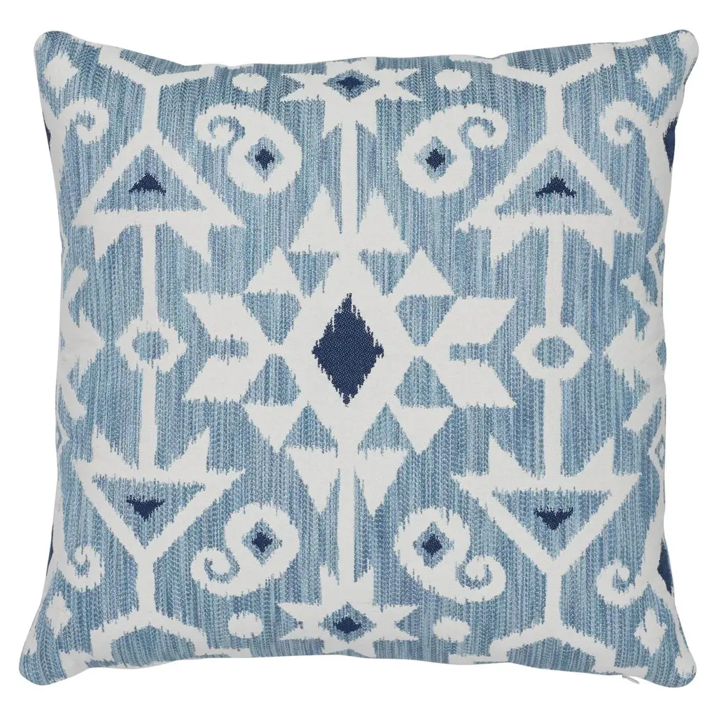 Tufted, Geometric Print Outdoor Pillow, Navy Blue, 20" X 20"