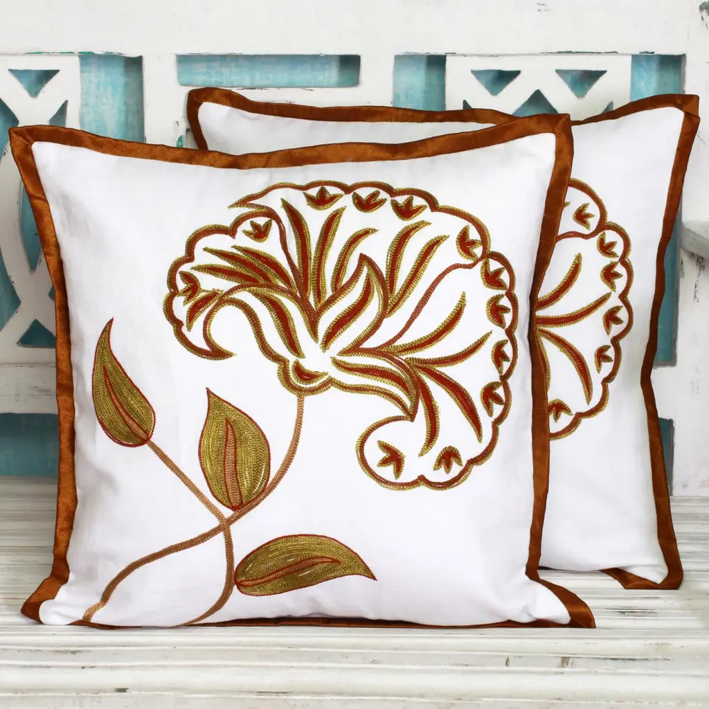 This cushion is covered in a fine lampas called “Tulipani”. Its pattern represents stylized tulips surrounded by curled leaves. The combination of colors and the ornamental motif, enhanced by the shine of metallic yarns, make it a fabric of unique refinement and elegance, perfect for both classic and contemporary environments. The cushion is lined and zippered and entirely made in Italy.