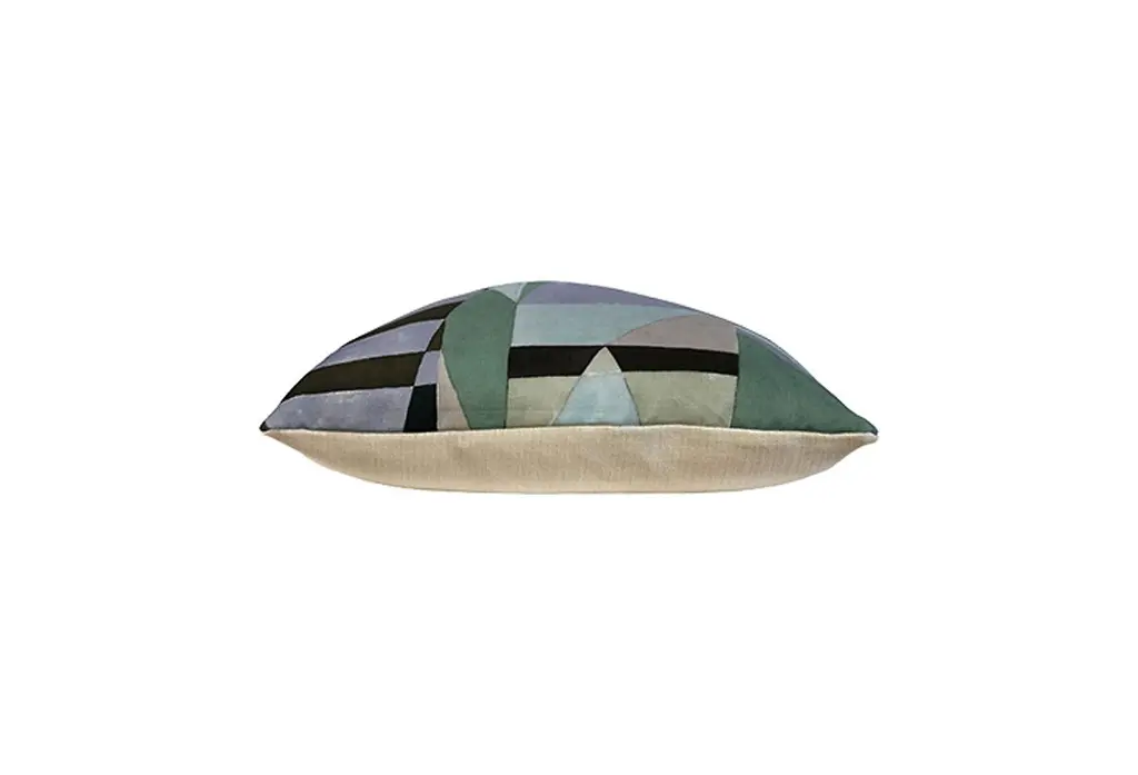 Perfect for updating the sofa with a pop of pattern, this linen-blend pillow features a colorful geometric abstract motif on one side and a solid cream back. Insert included. Zipper closure.