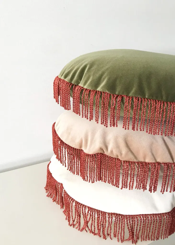 A talisman for the home of beauty, good energies and comfort.This decorative pillow is ethically produced by small family run business, hand-made by skilled portuguese artisans with top quality cotton velvet. Each piece is unique and made especially for you.Designed to make your world a happy place to live.Size:ap. ø 45 cm.bottom invisible zipper.Composition:cotton velvet.Care:dry cean only.Anti-allergic cushion pad / filler optionalHand tailored in Portugal.As an handmade product, small variations may occur.