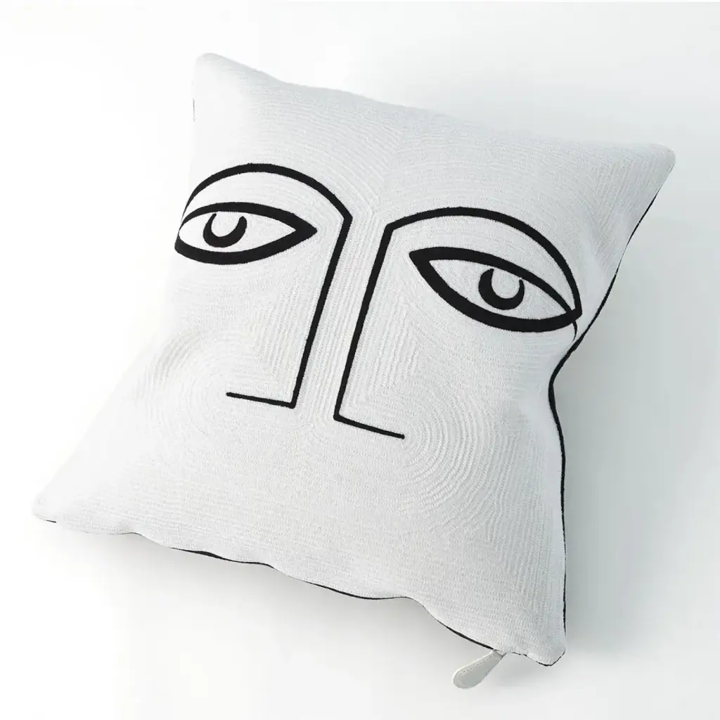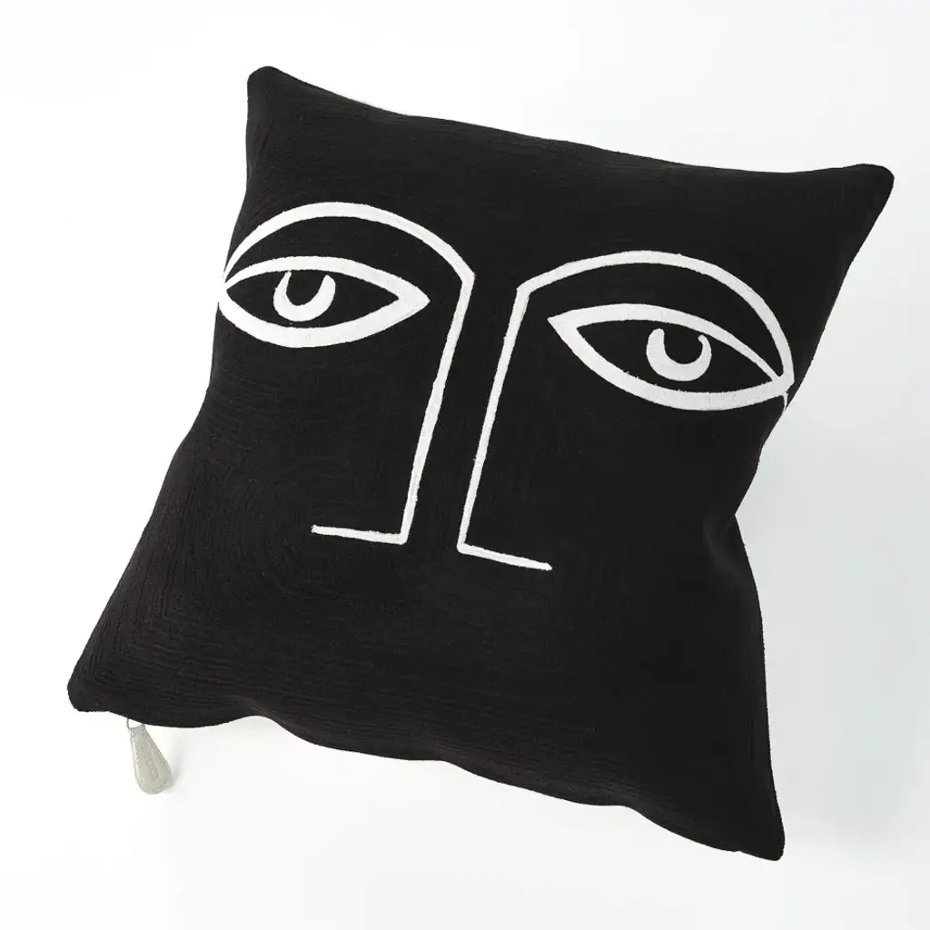 Our Two Eye Pillow features the embroidery stitched upper half of a human face. This double-sided pillow features inverted colorways. From a fashion forward perspective, Global Views offers accessories, furniture, statement lighting, and an assortment of rugs and mirrors to add beauty and joy to your home.