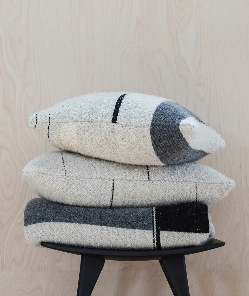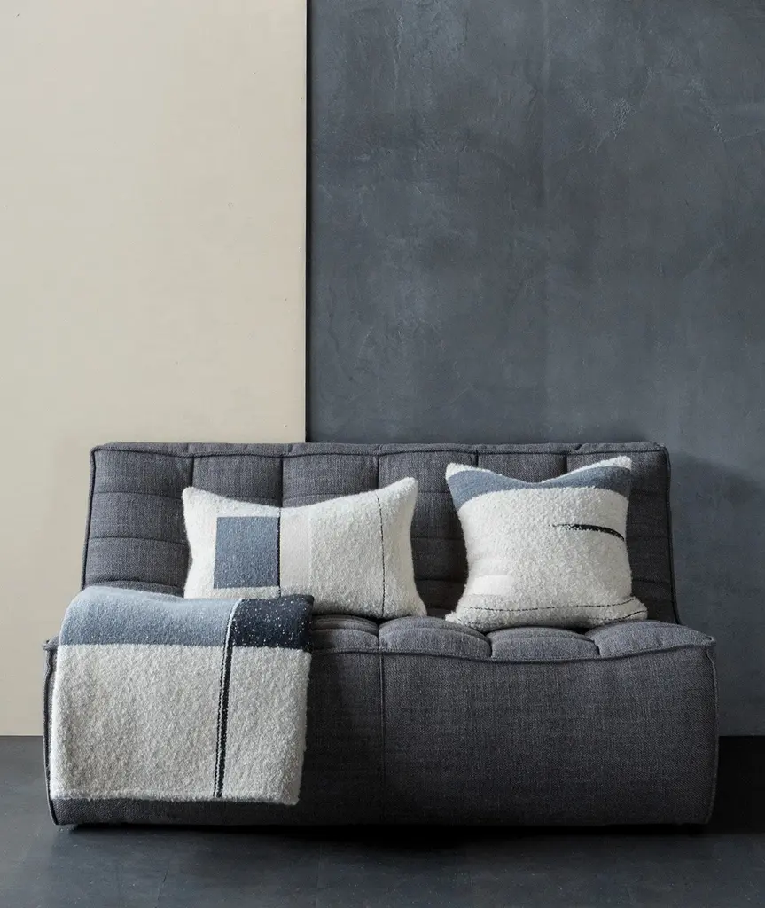 Manufactured in a Belgian family-owned weaving mill, this collection named “Refined Layers” consists of cushions and throws featuring abstract patterns for an understated and original look. They are manufactured from Jacquard fabrics woven mainly from cotton, linen and wool, which blend together to create a play on textures and assorted shaded tones. Mix and match freely with this plush and cozy collection.