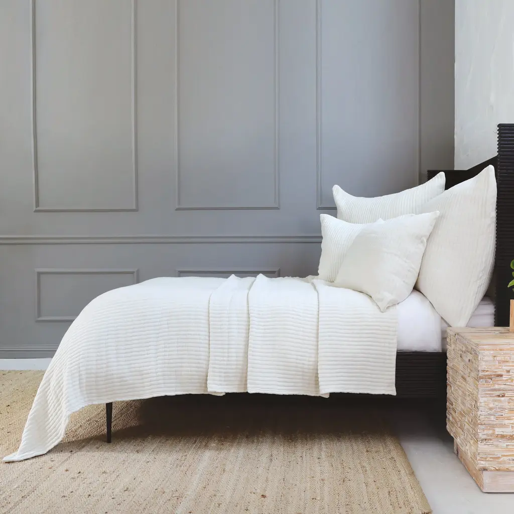 Transform your bed into a luxurious retreat with the Vancouver Big Pillow With Insert from Pom Pom At Home. Crafted from lightweight stonewashed cotton gauze, this pillow adds a touch of texture and elegance. The interwoven ivory stripe adds visual interest to your space, creating a tranquil and inviting atmosphere. Highlights