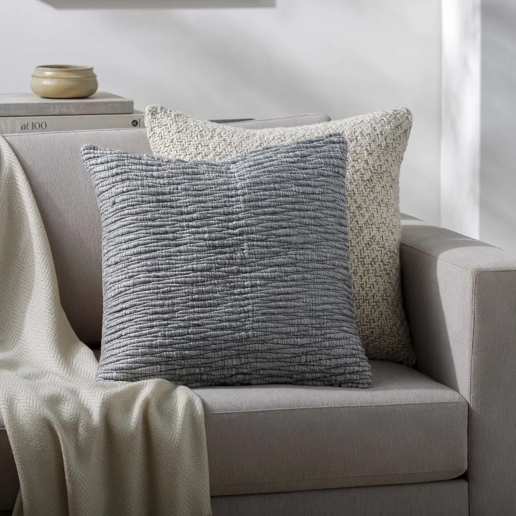 Sophisticated and a little bit fun, the Varina Toss Pillow features a super soft, grey ruched weave. This pillow is the perfect choice for adding a bit of dramatic texture to room!