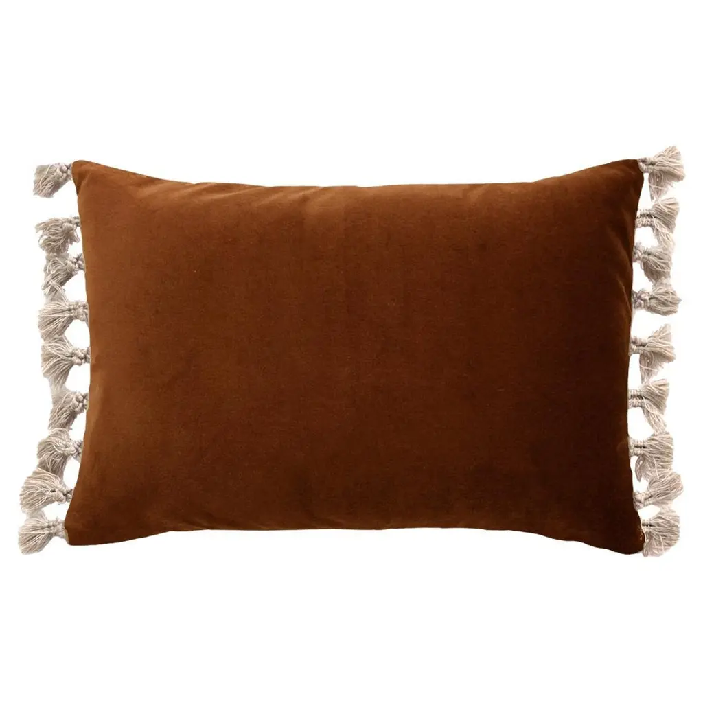 Accent pillows add a welcoming touch to a seat, bench or bed. This gorgeous velvet pillow is sweetly appointed with pom pom detailing around the perimeter.